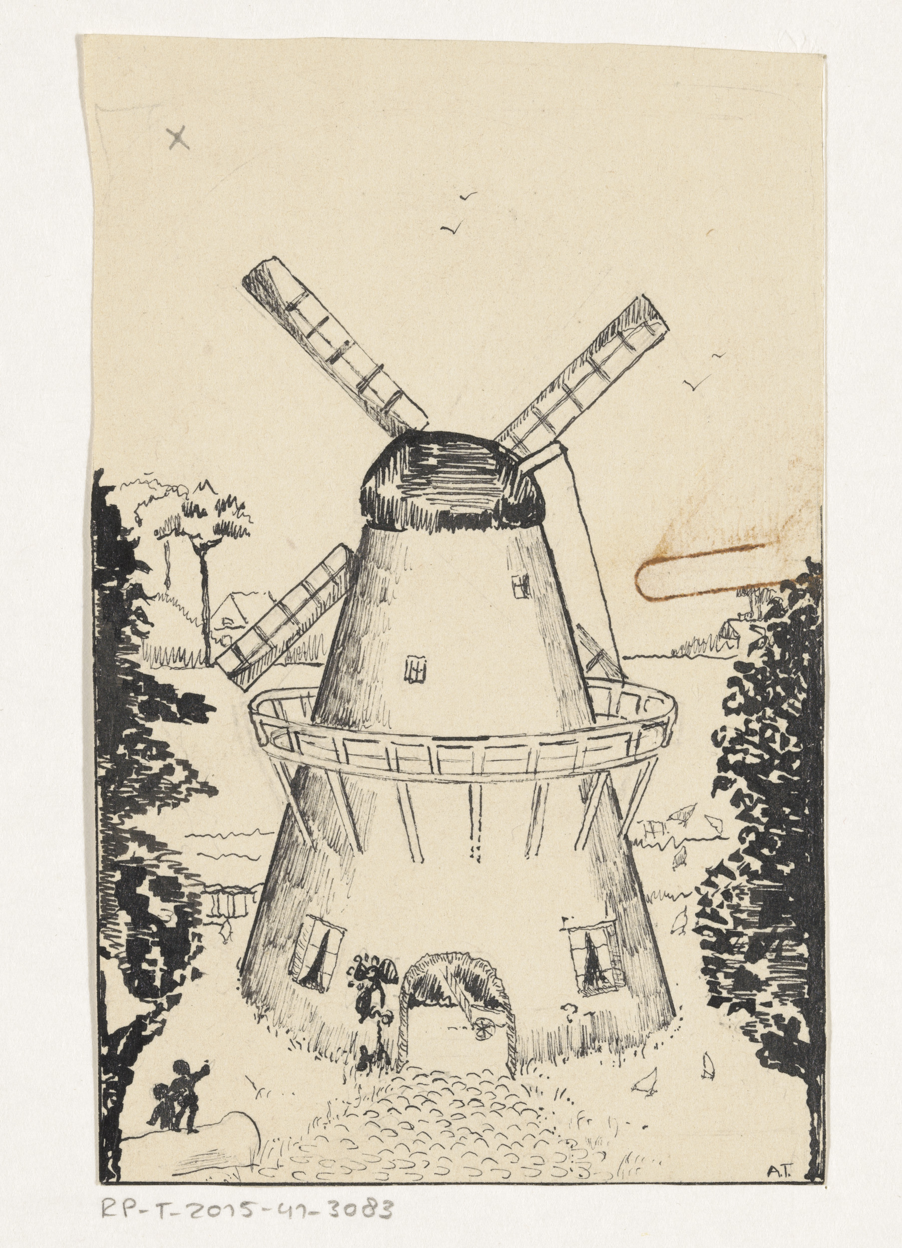 Windmolen in een landschap