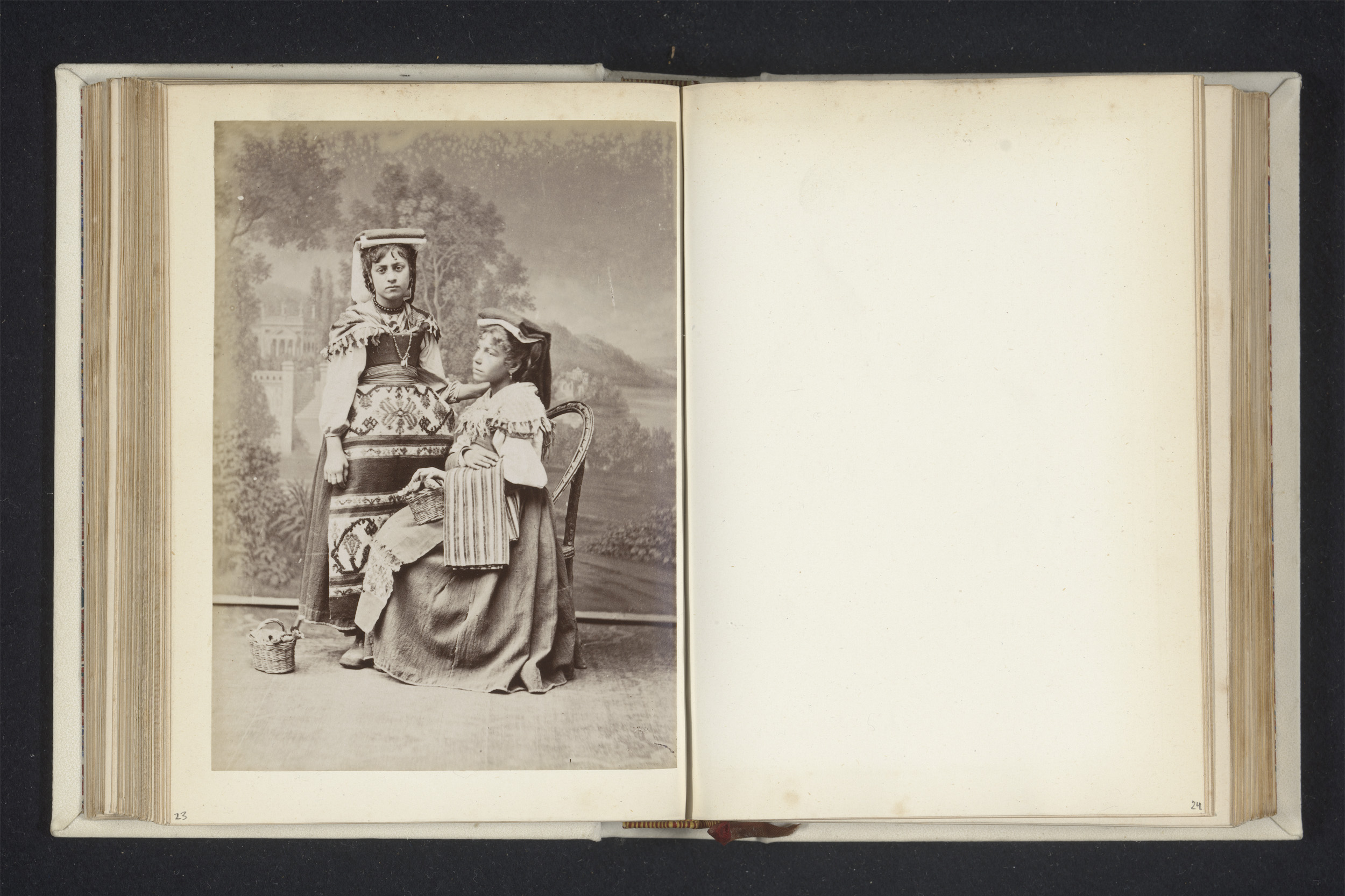 Portret van twee onbekende vrouwen in Italiaanse kle...