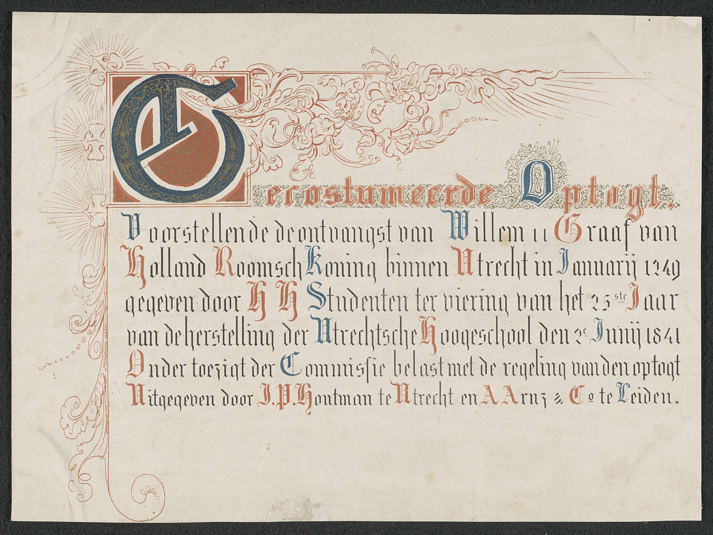Gekostumeerde optocht van 1841: graaf Willem II en r...