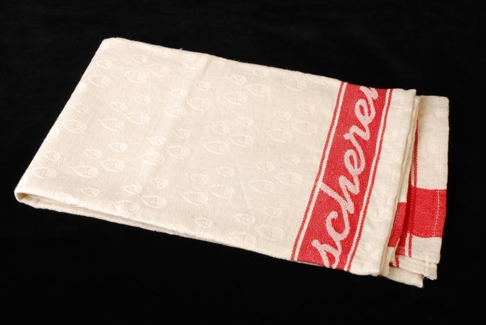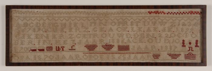 Langwerpige geborduurde tekenlap in kruissteek in ro...