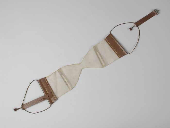 Snorbeschermer van fijn wit gaas met bruin schapenle...