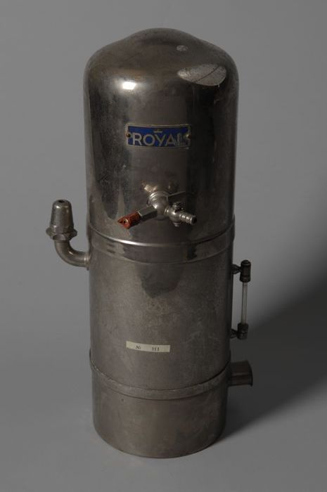 Zilverkleurige cilindrische boiler, gebruikt door ka...