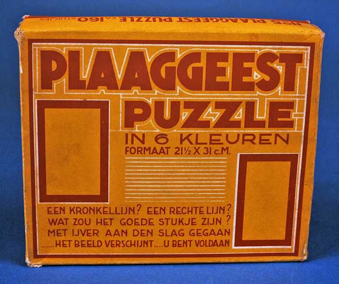 Legpuzzel "PLAAGGEEST" in gele doos: mannen te paard...