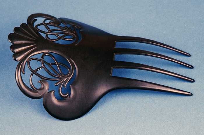 Sierkam van zwart kunststof, grote opengewerkte kam ...