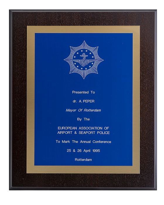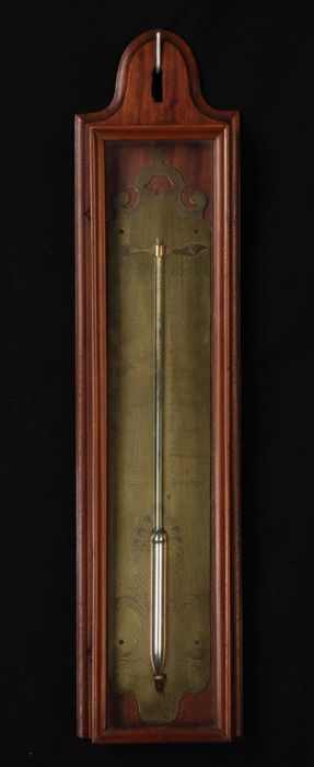 Kastthermometer met gegraveerde messing plaat met da...