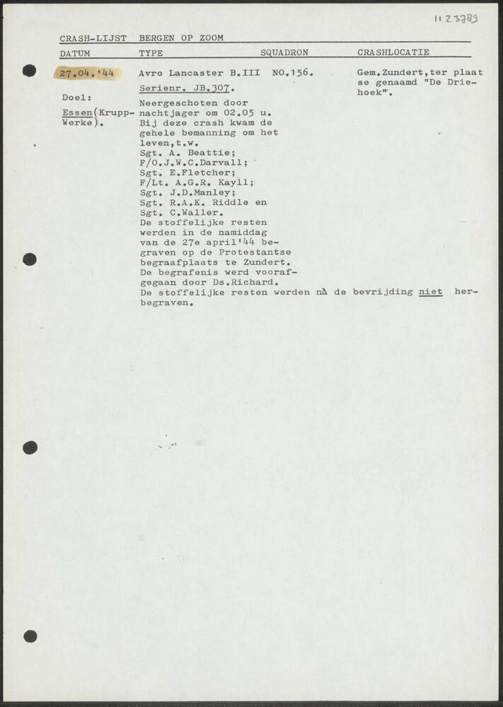 Crash-lijst Bergen op Zoom 27 april 1944.