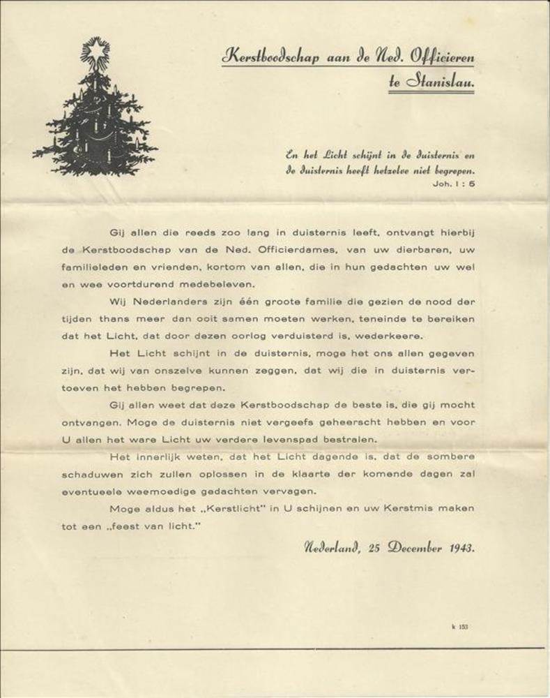 Kerstboodschap aan de Ned. Officieren te Stanislau, ...