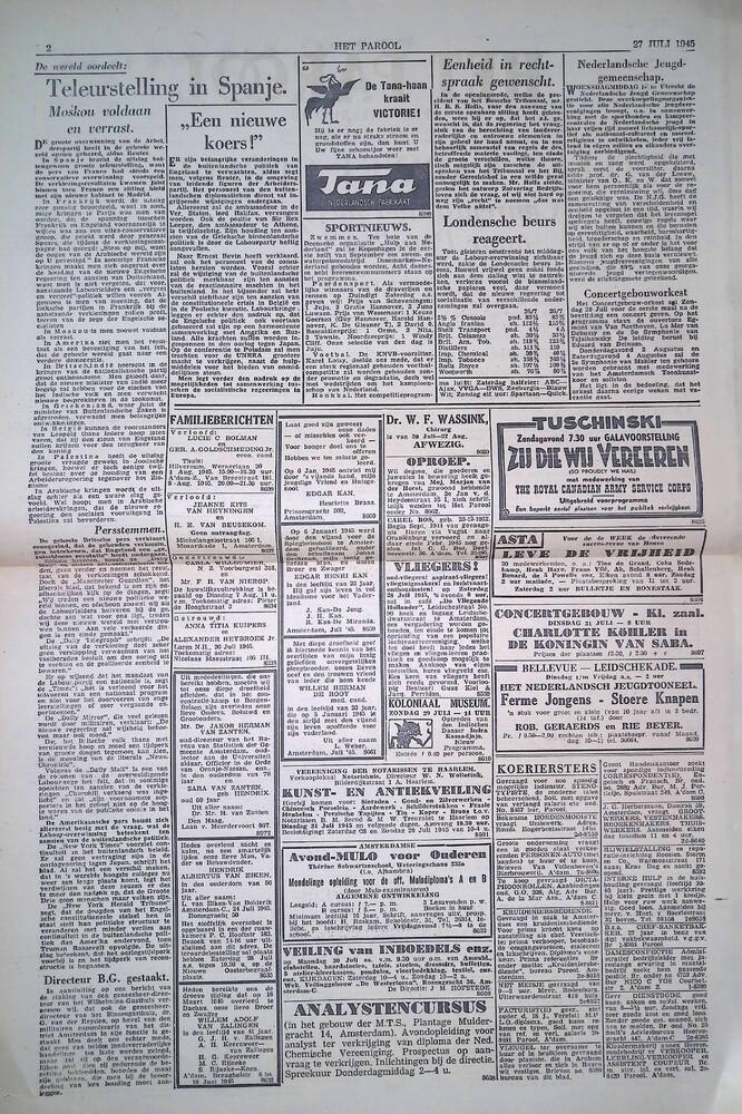 Het Parool, 27 juli 1945, 5e Jaargang, No 169 EXTRA ...