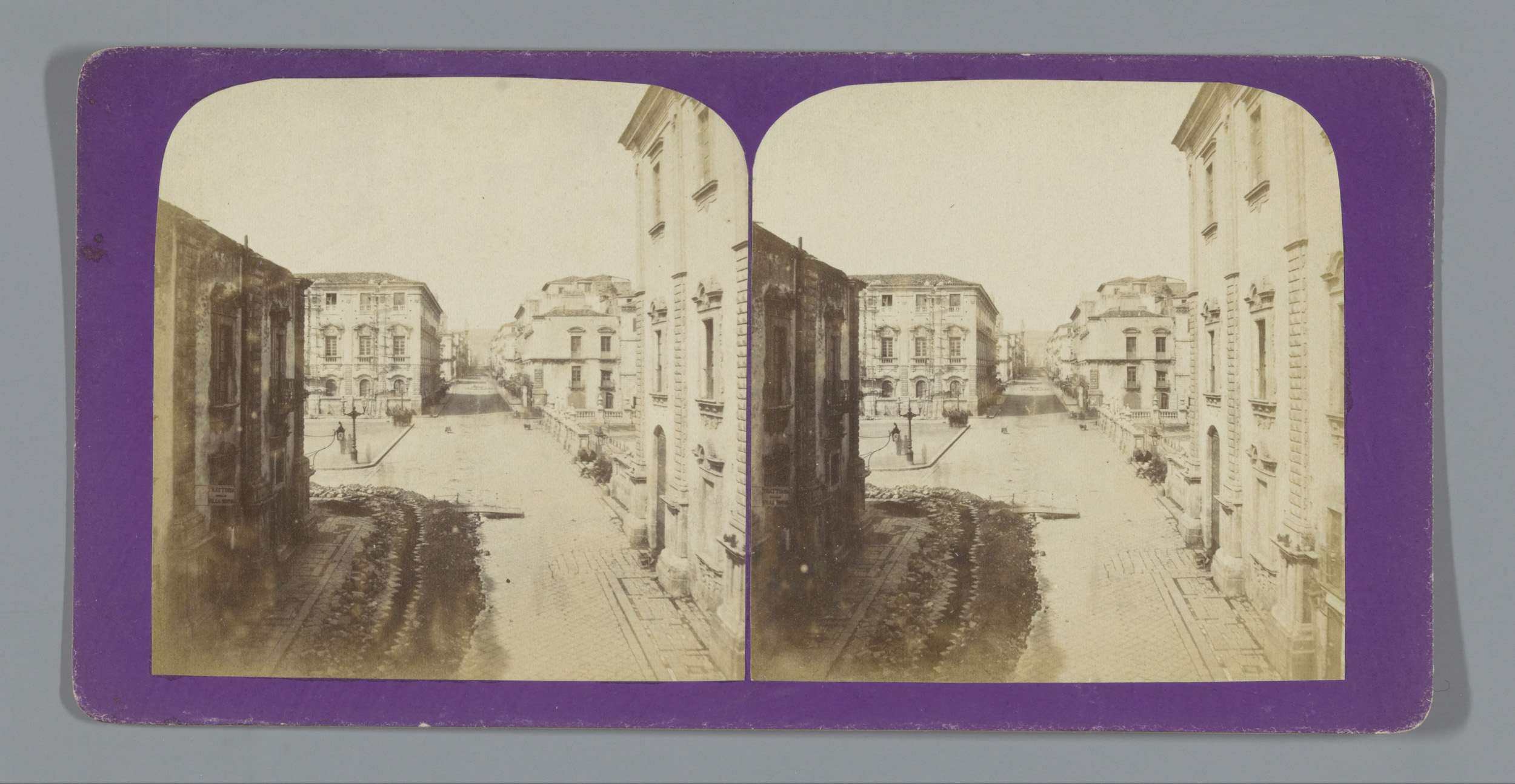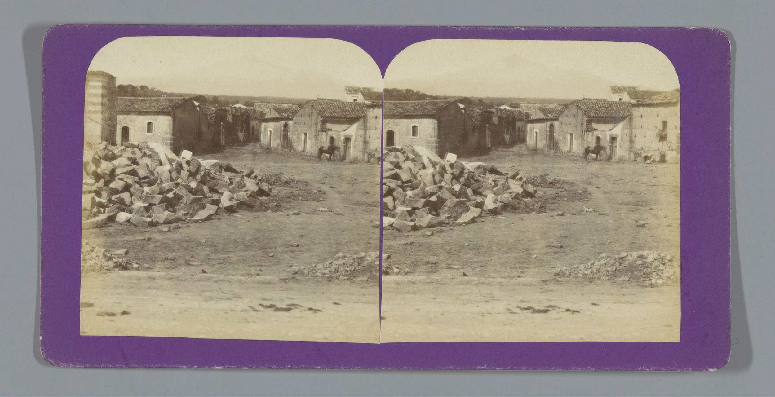 Gezicht op een dorpsstraat aan de voet van de Etna