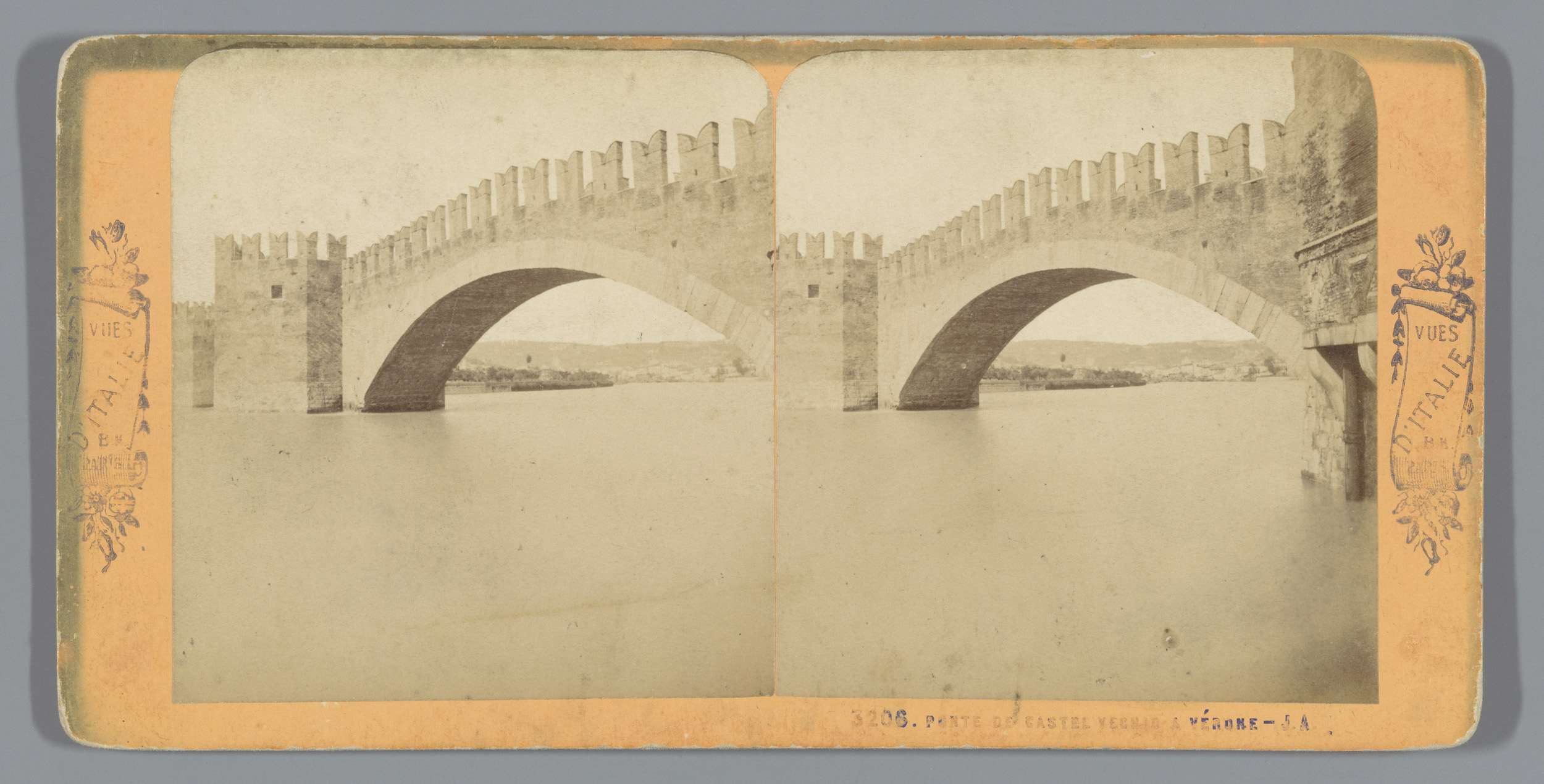 Gezicht op de Scaligerbrug bij Castel Vecchio, Verona