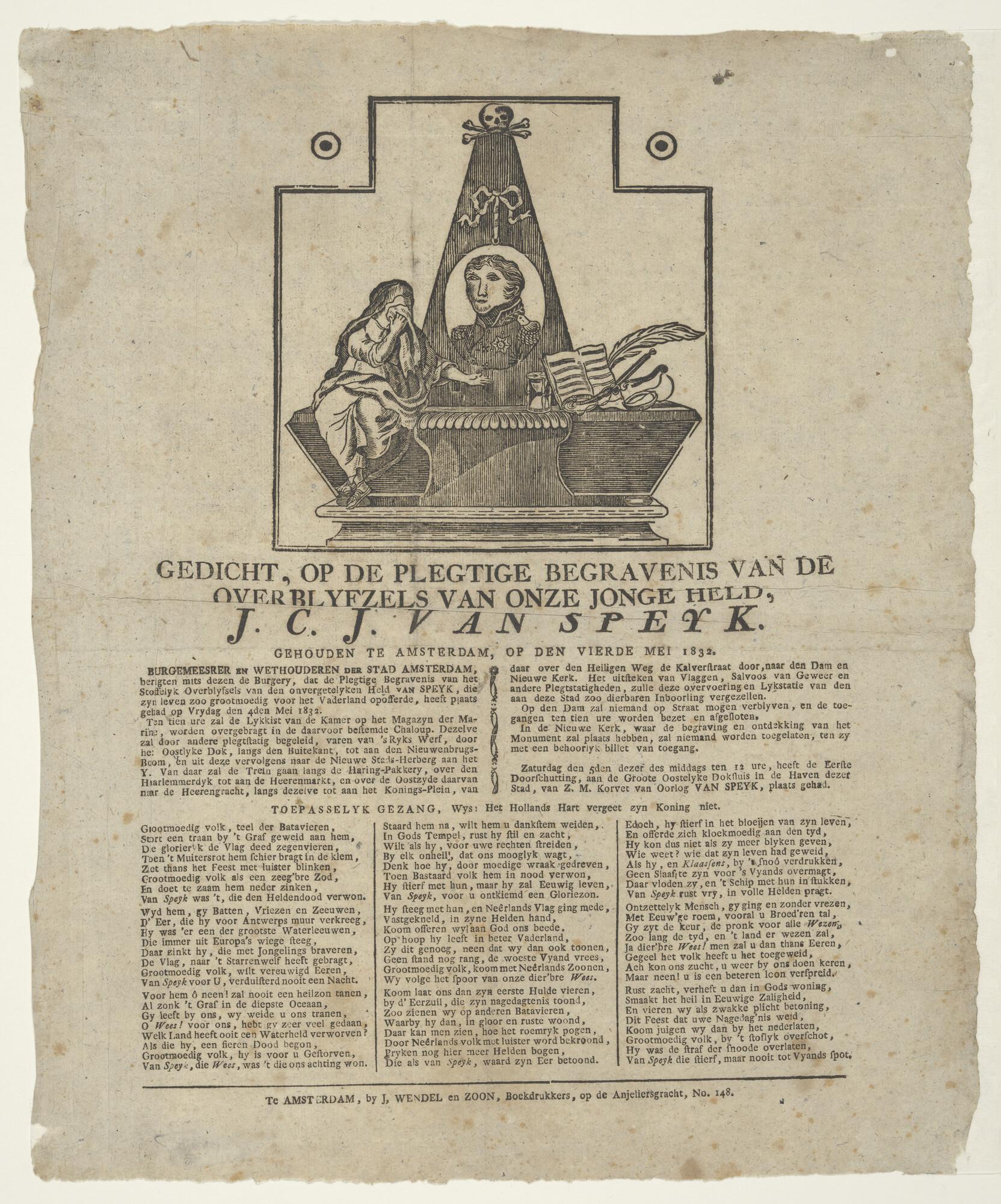 Gedicht op de begrafenis van J.C.J. van Speyk met mi...