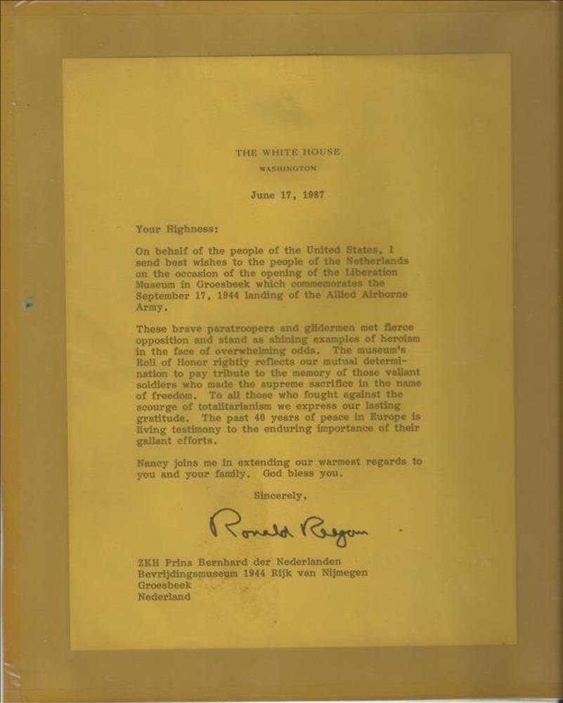 Brief van Ronald Reagan aan ZKH Prins Bernhard der N...