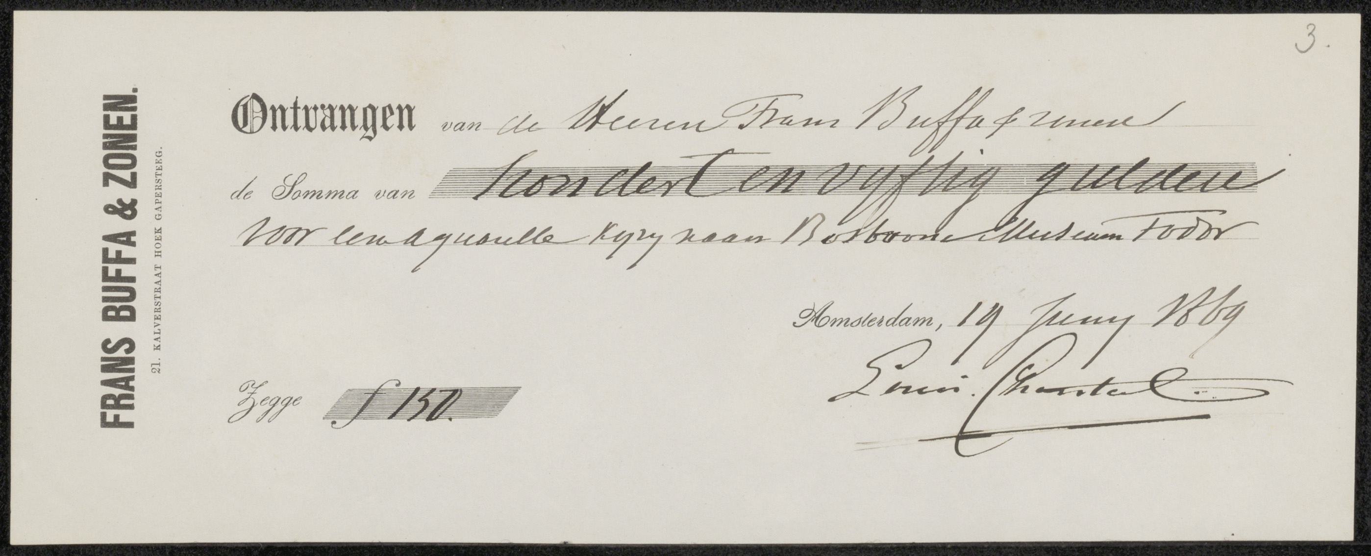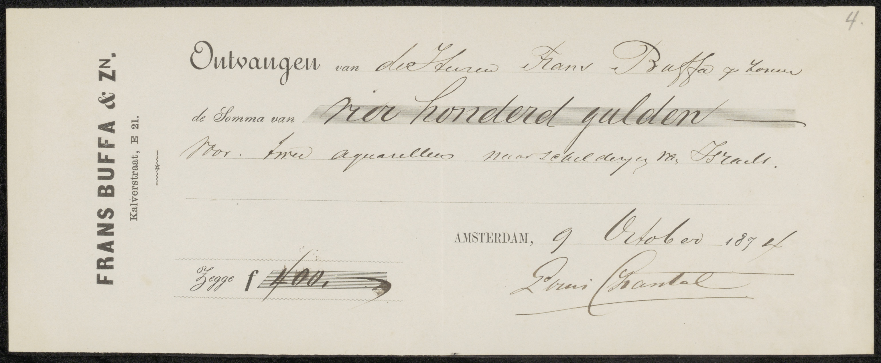 Kwitantie voor Louis Chantal