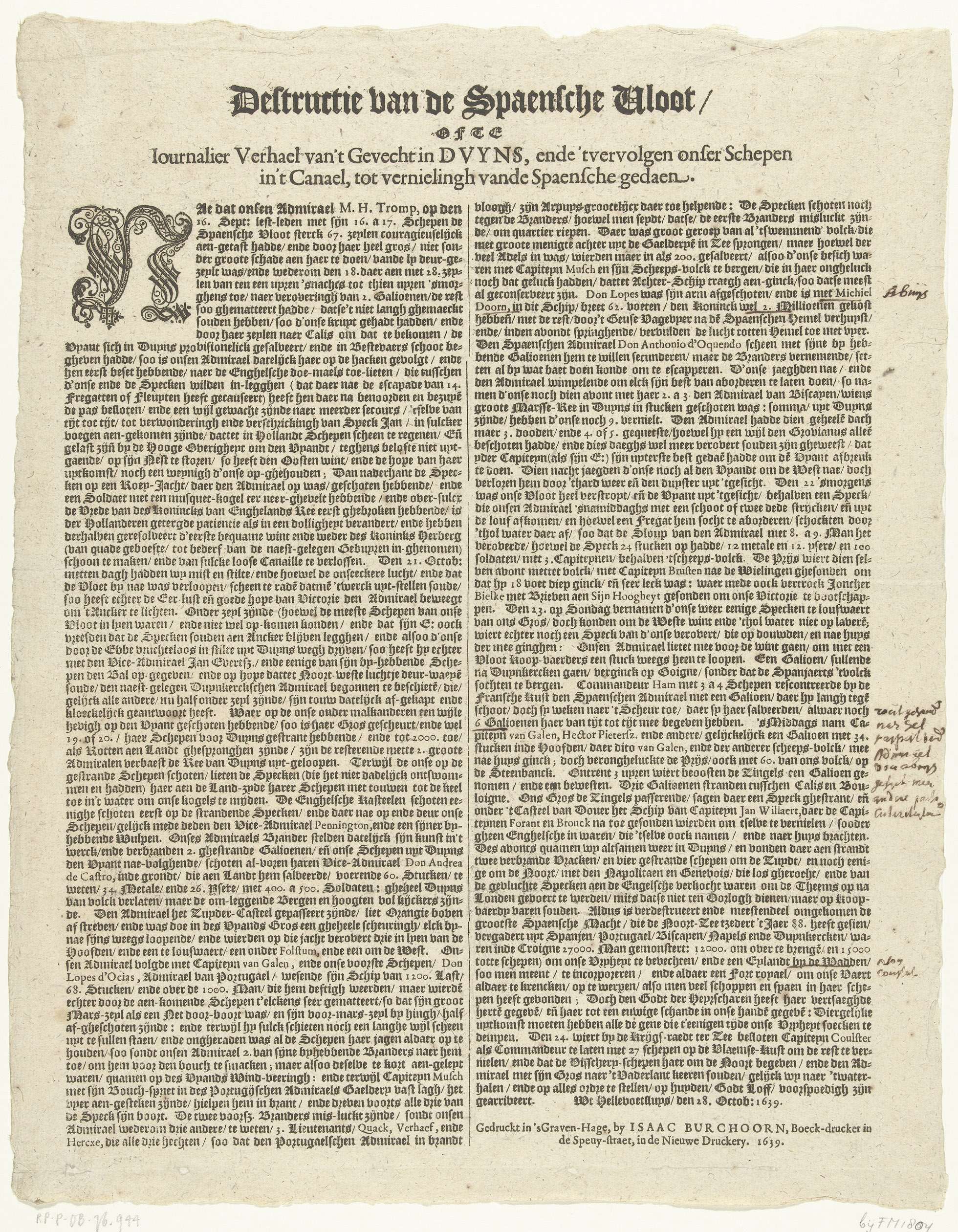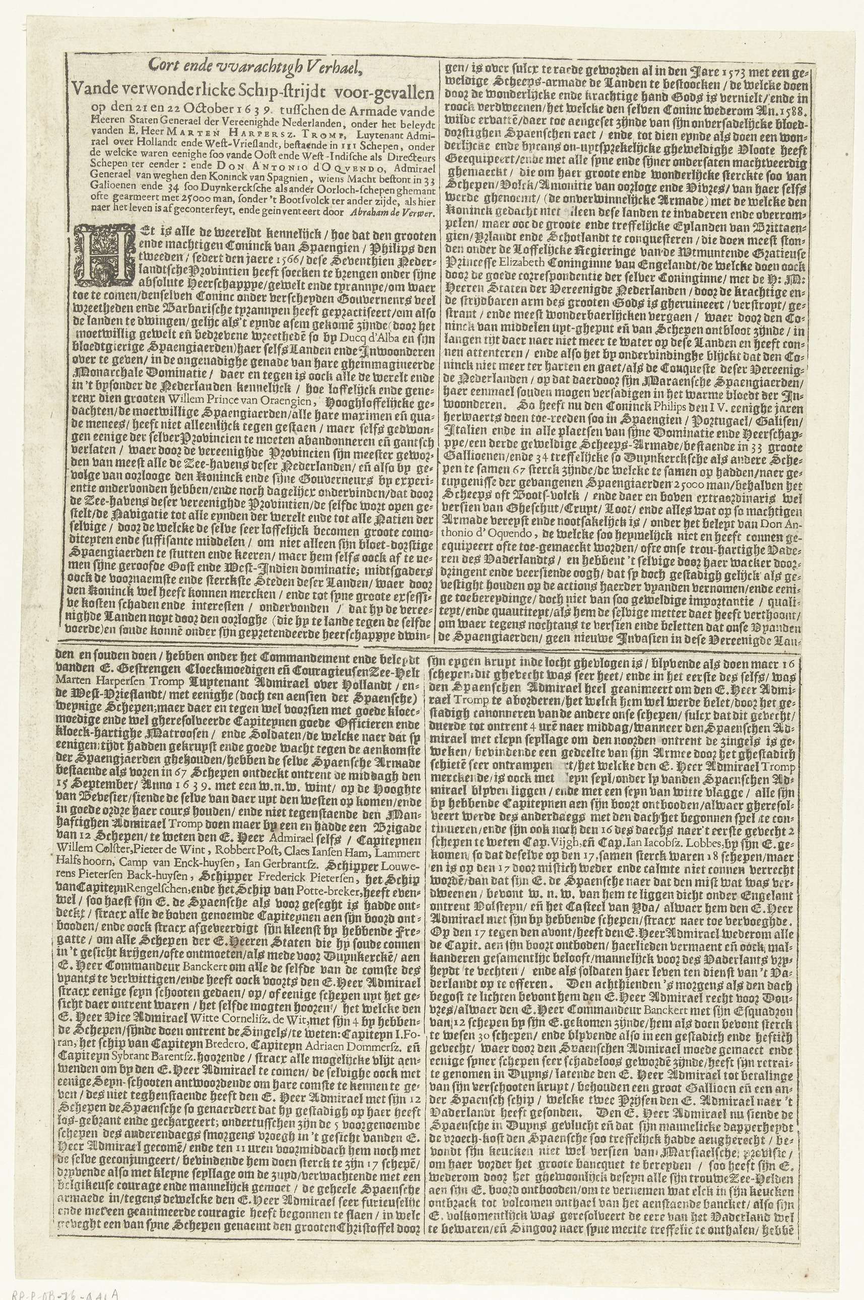 Zeeslag bij Duins (linker tekstblad), 1639