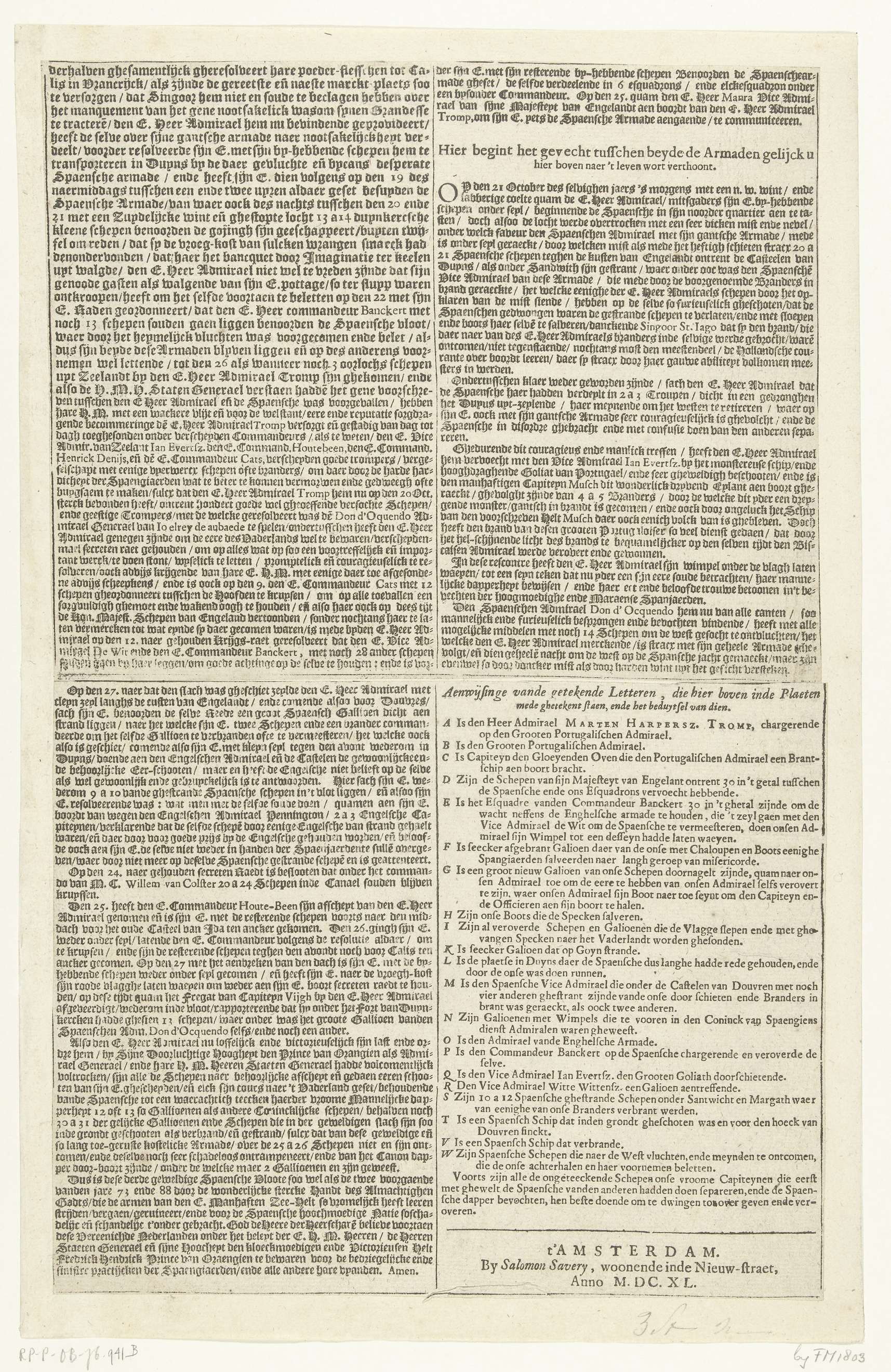 Zeeslag bij Duins (rechter tekstblad), 1639