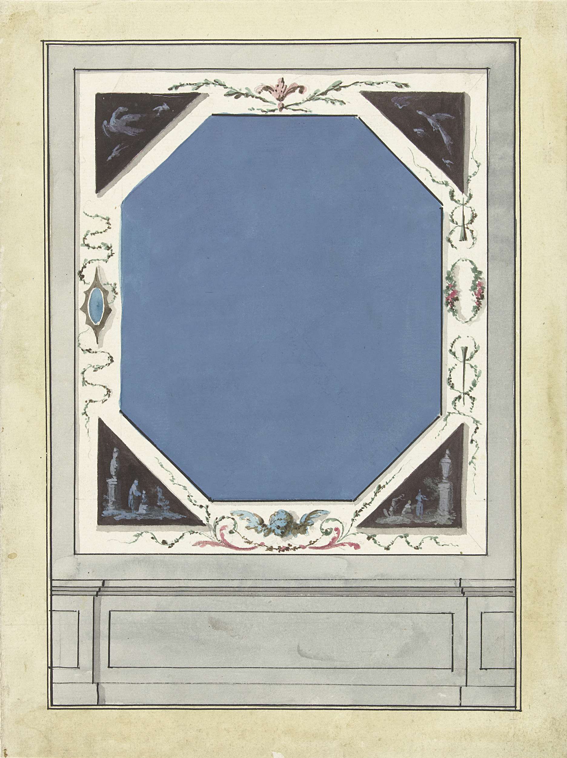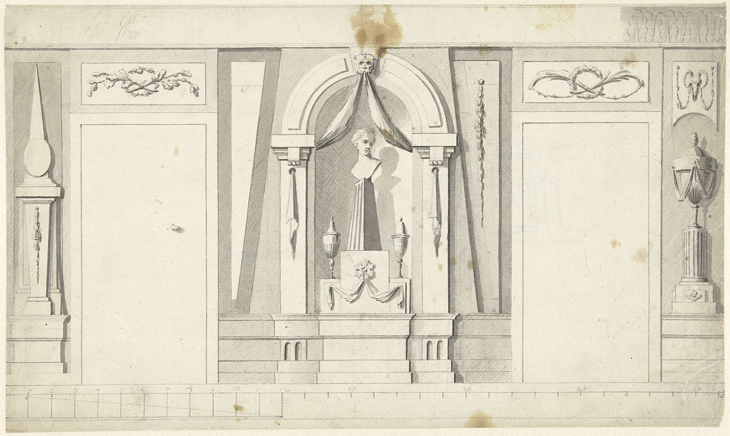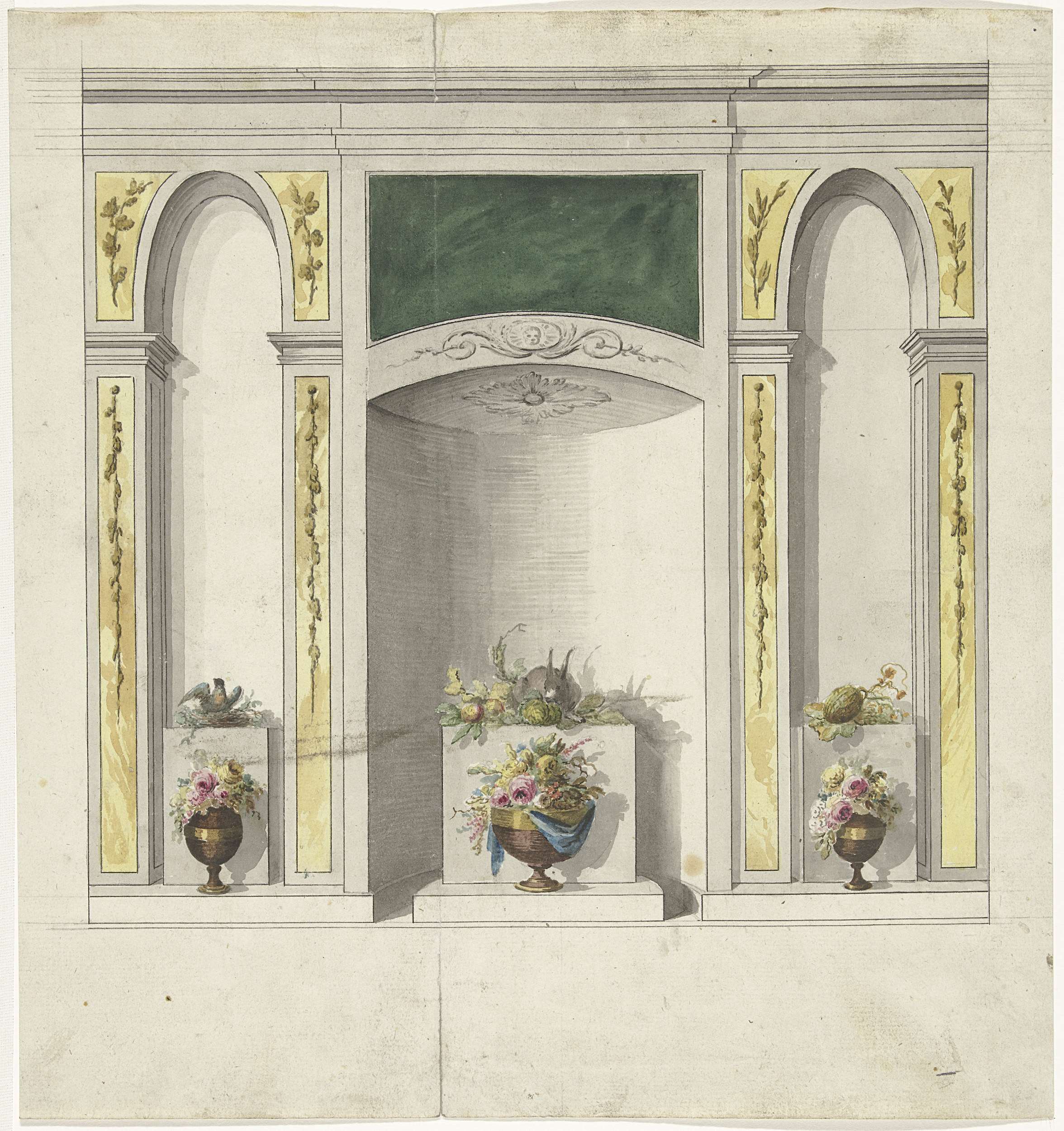 Ontwerp voor kamerversiering met drie nissen waarin ...