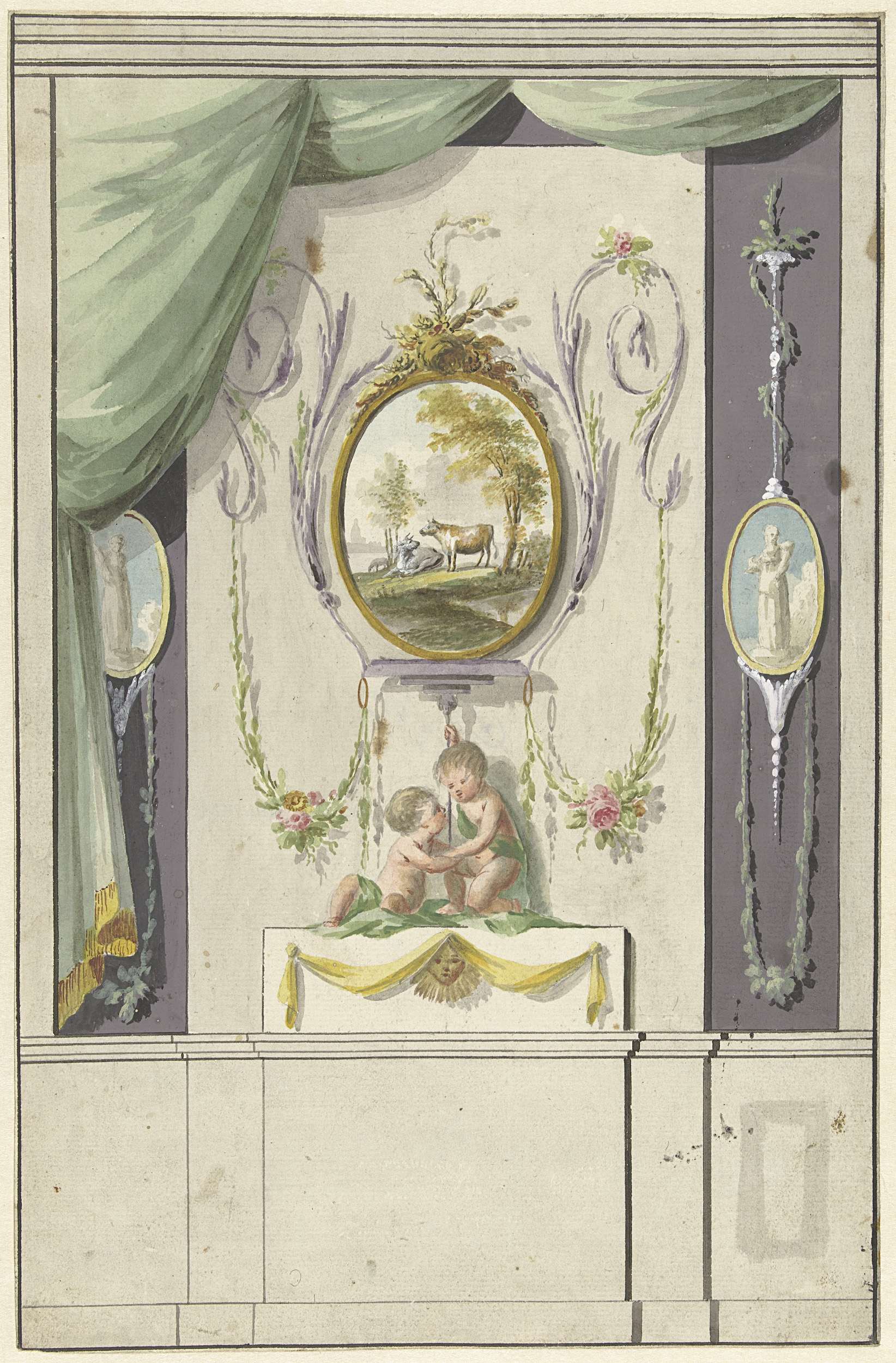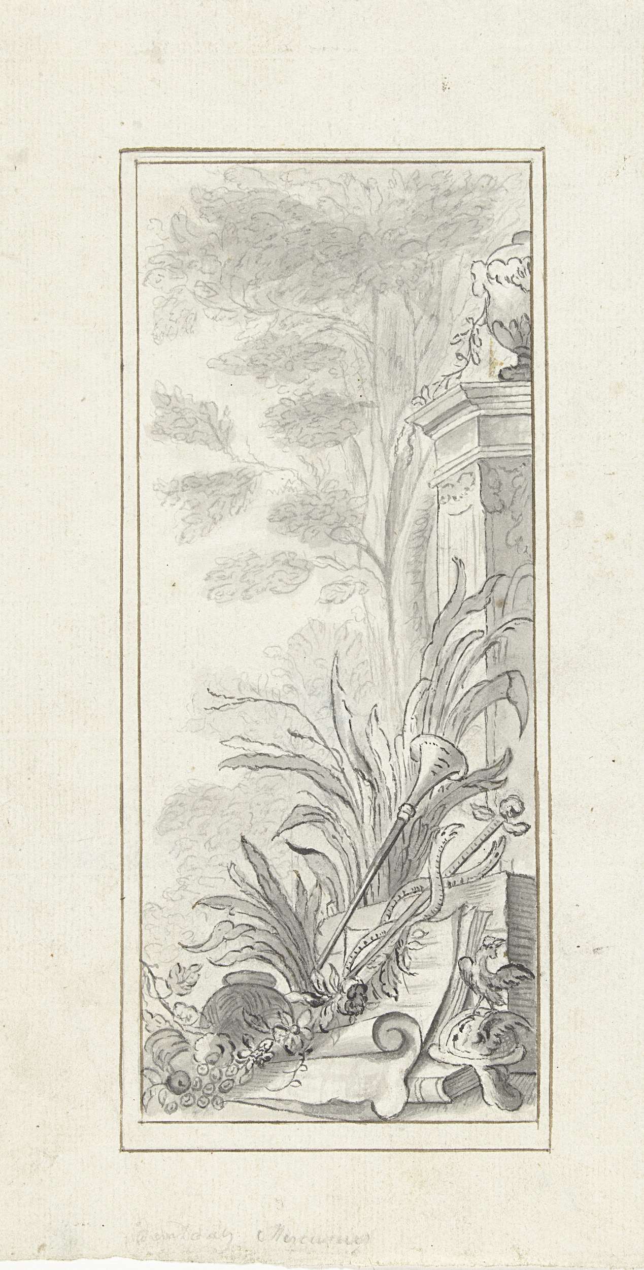 Ontwerp voor een kamerversiering: attributen van Mer...