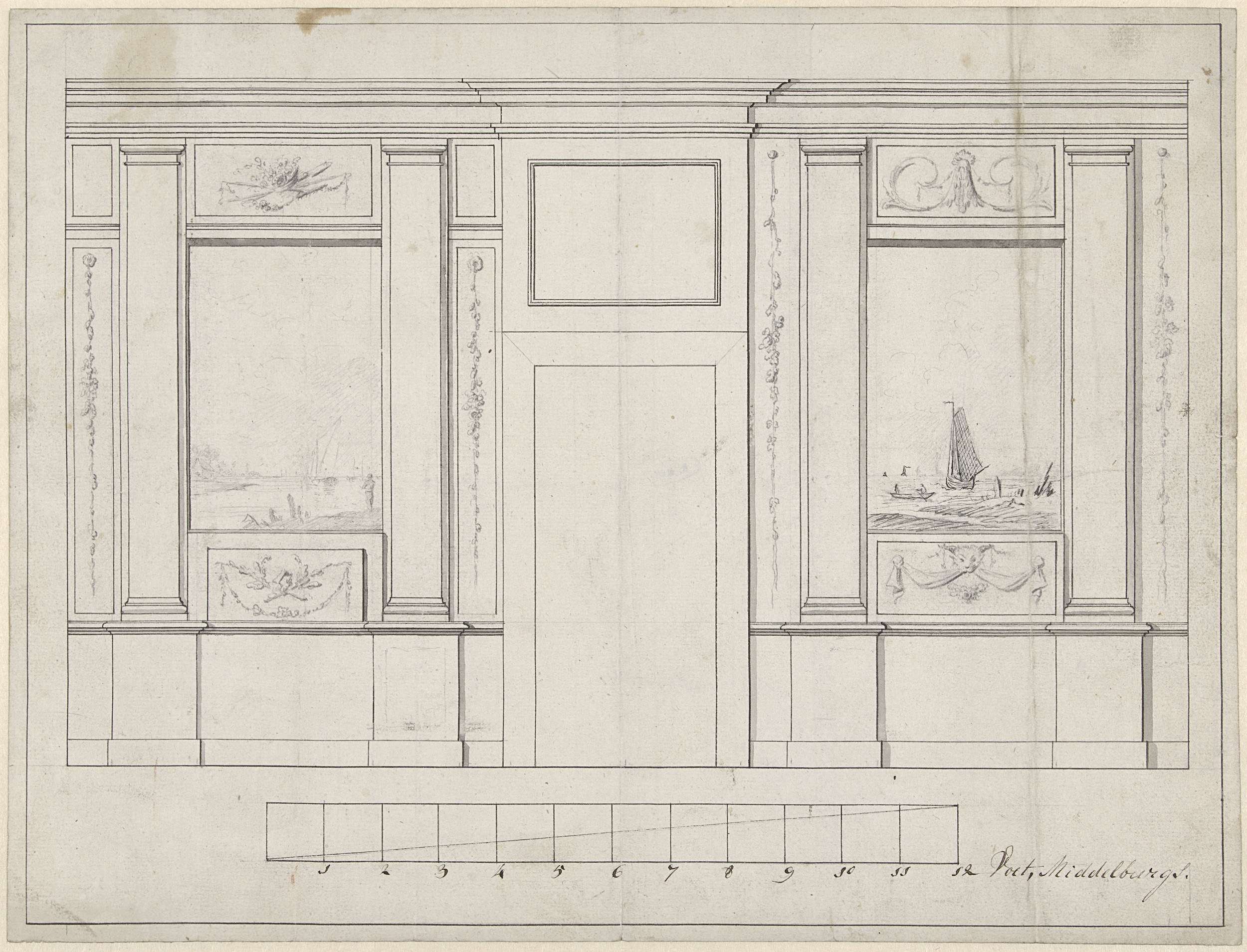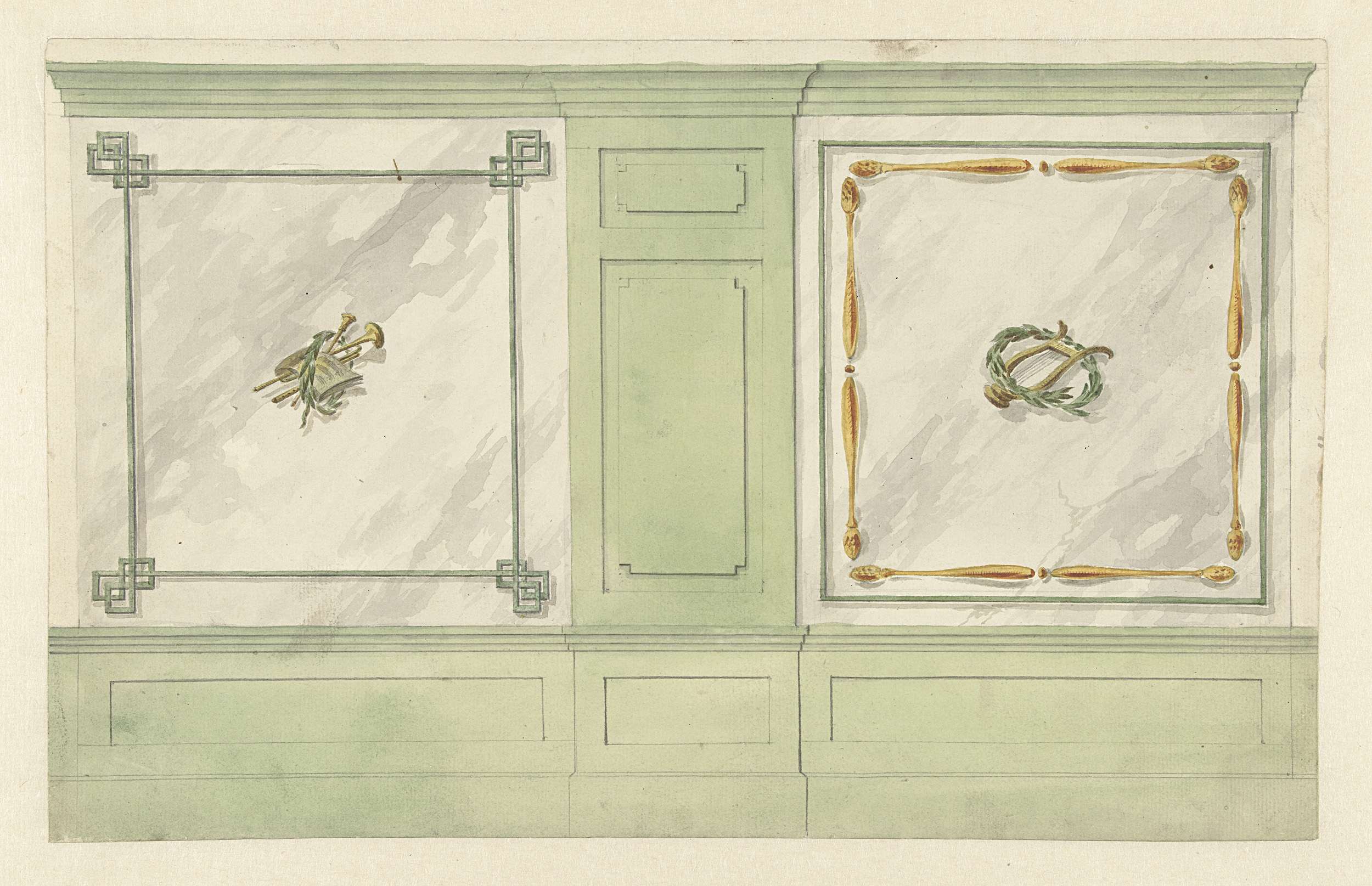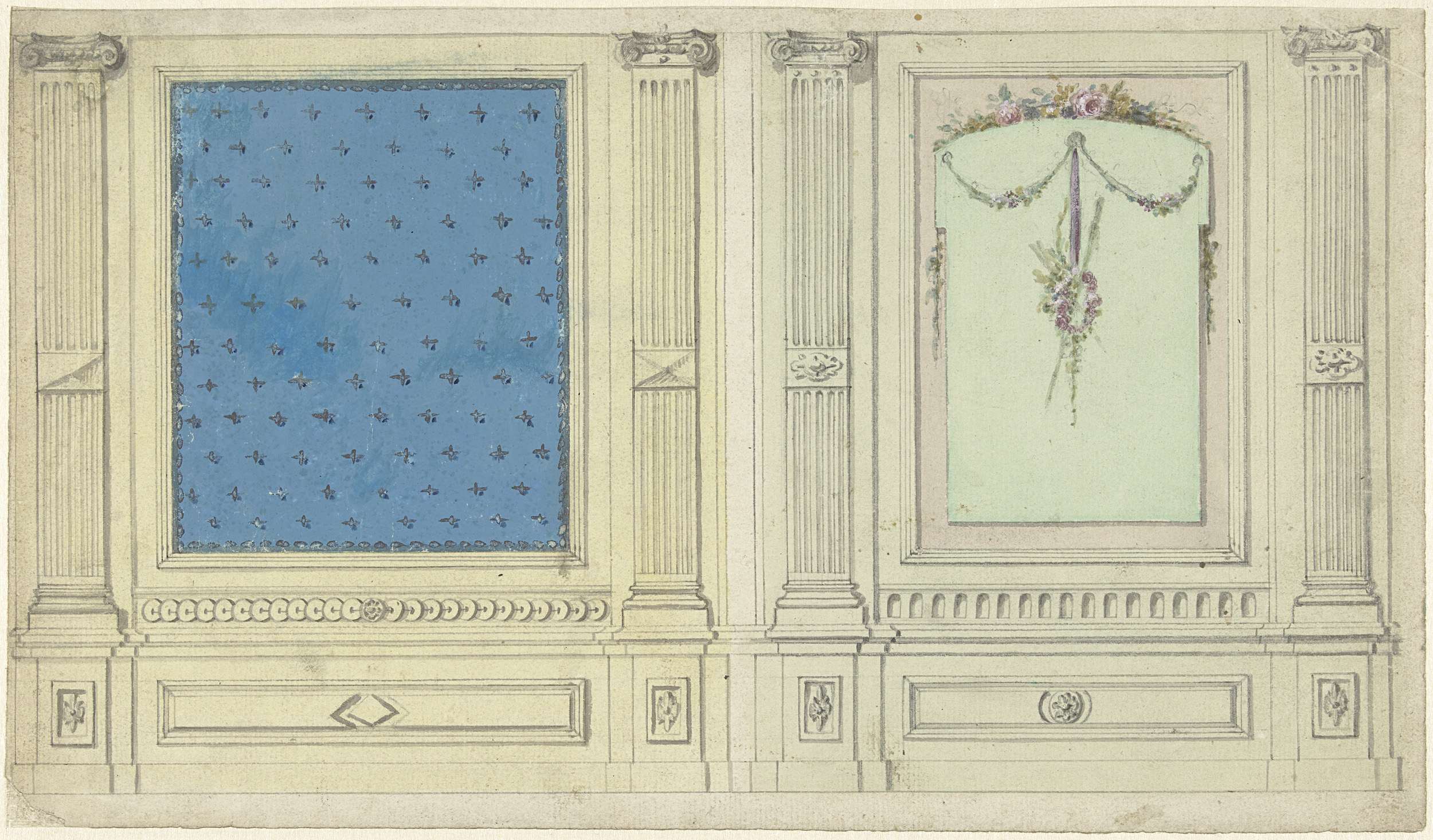 Ontwerp voor kamerversiering met twee panelen, een m...