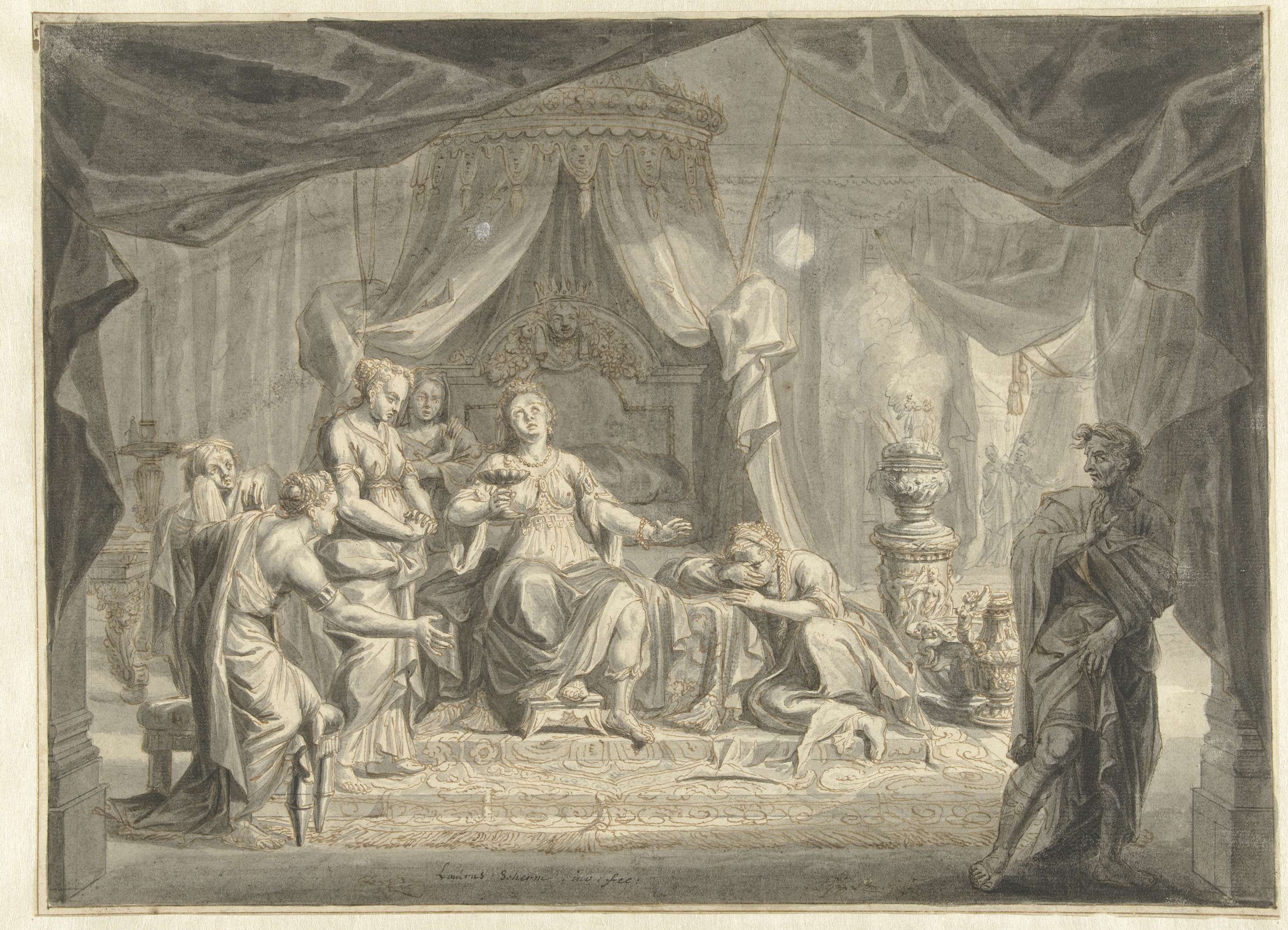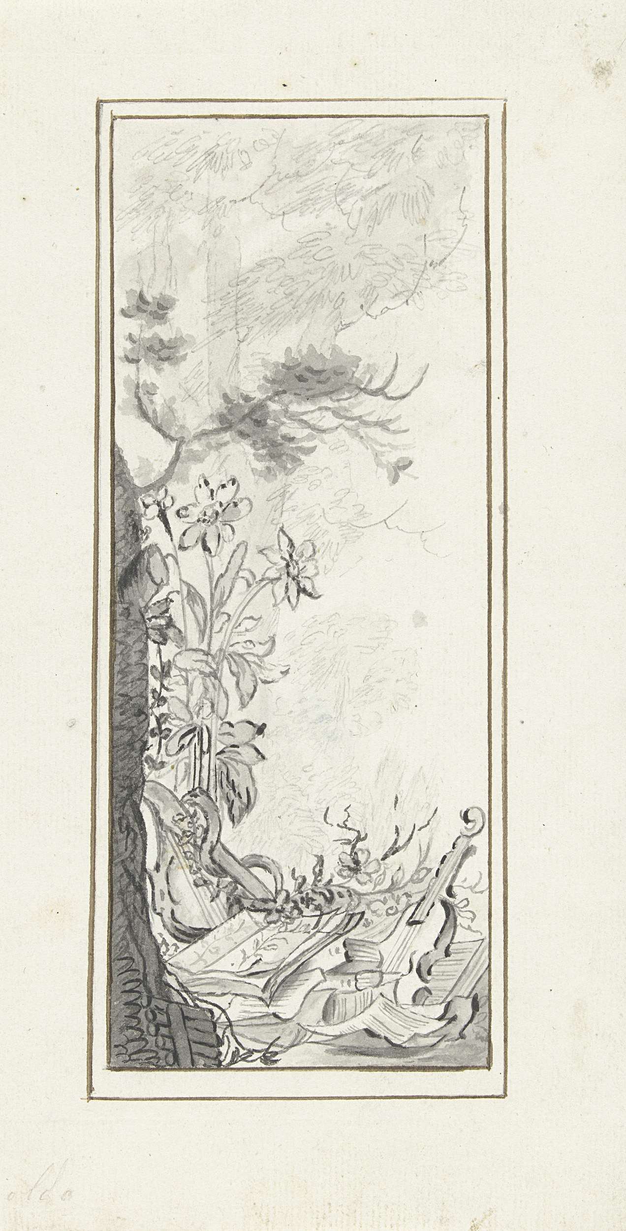 Ontwerp voor een kamerversiering: attributen van Apo...