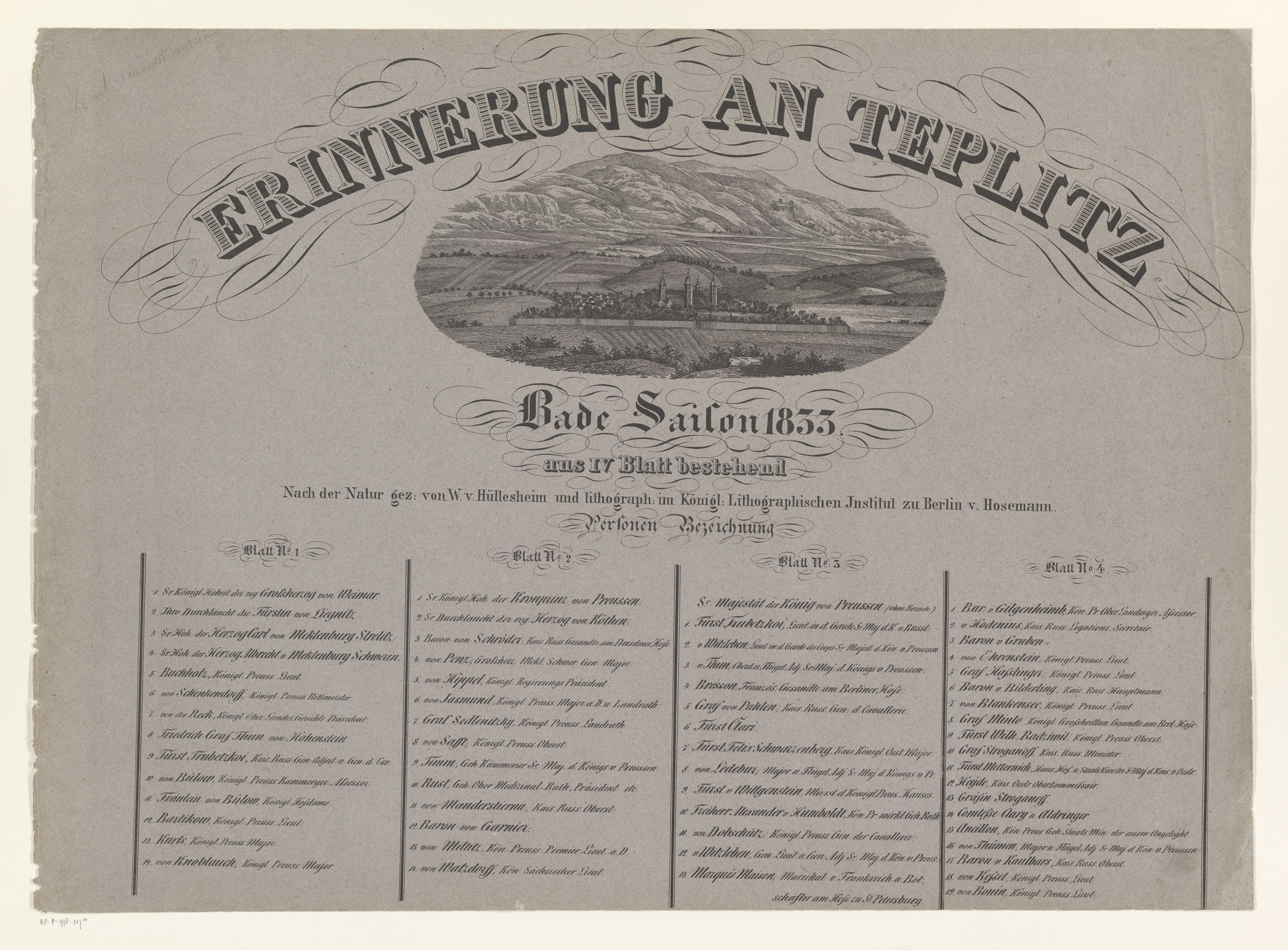 Omslag voor vier prenten met personen uit Teplice