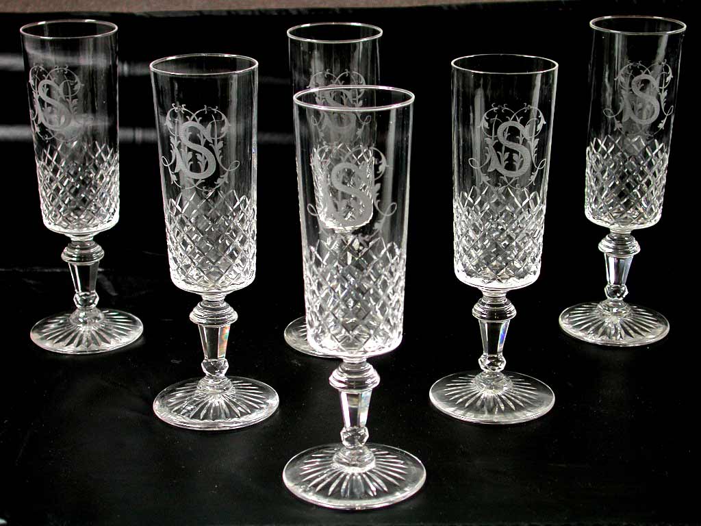 Karaf en glazen van kristal (een van zes champagnegl...