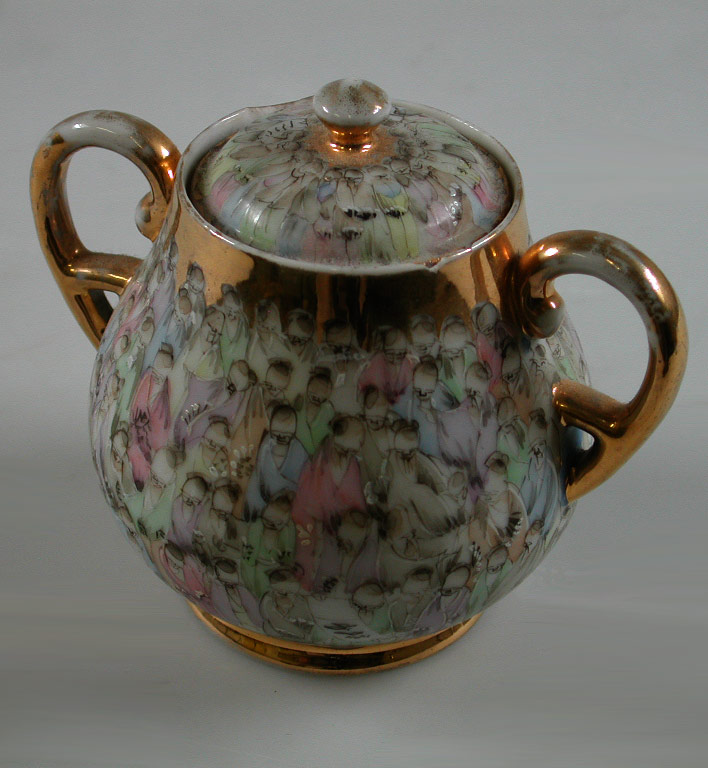 Japans dienblad met theepot, suikerpot en melkkan (m...