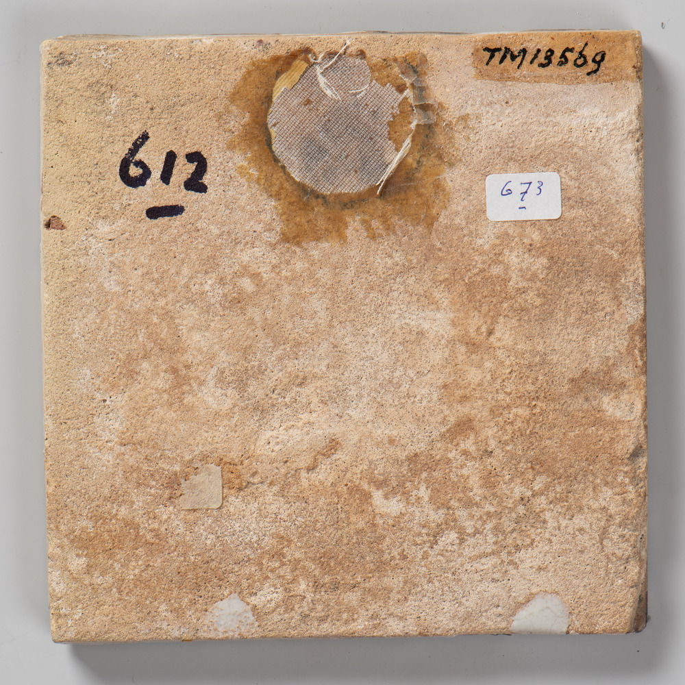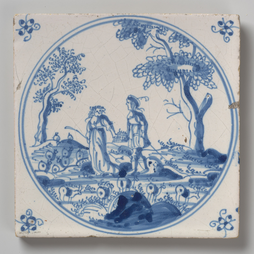 tegel van keramiek met tinglazuur, voorstellende: la...