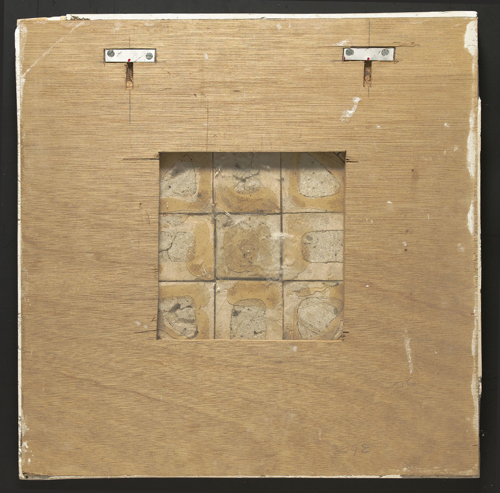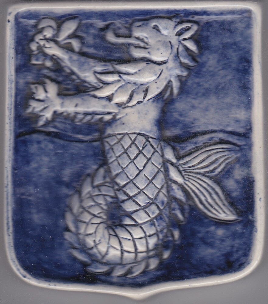 Tegel van aardewerk in reliëf, met voorstelling: wap...