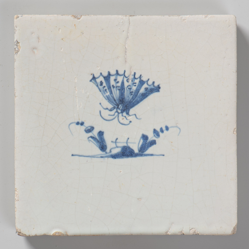 tegel van keramiek met tinglazuur, voorstellende: vl...