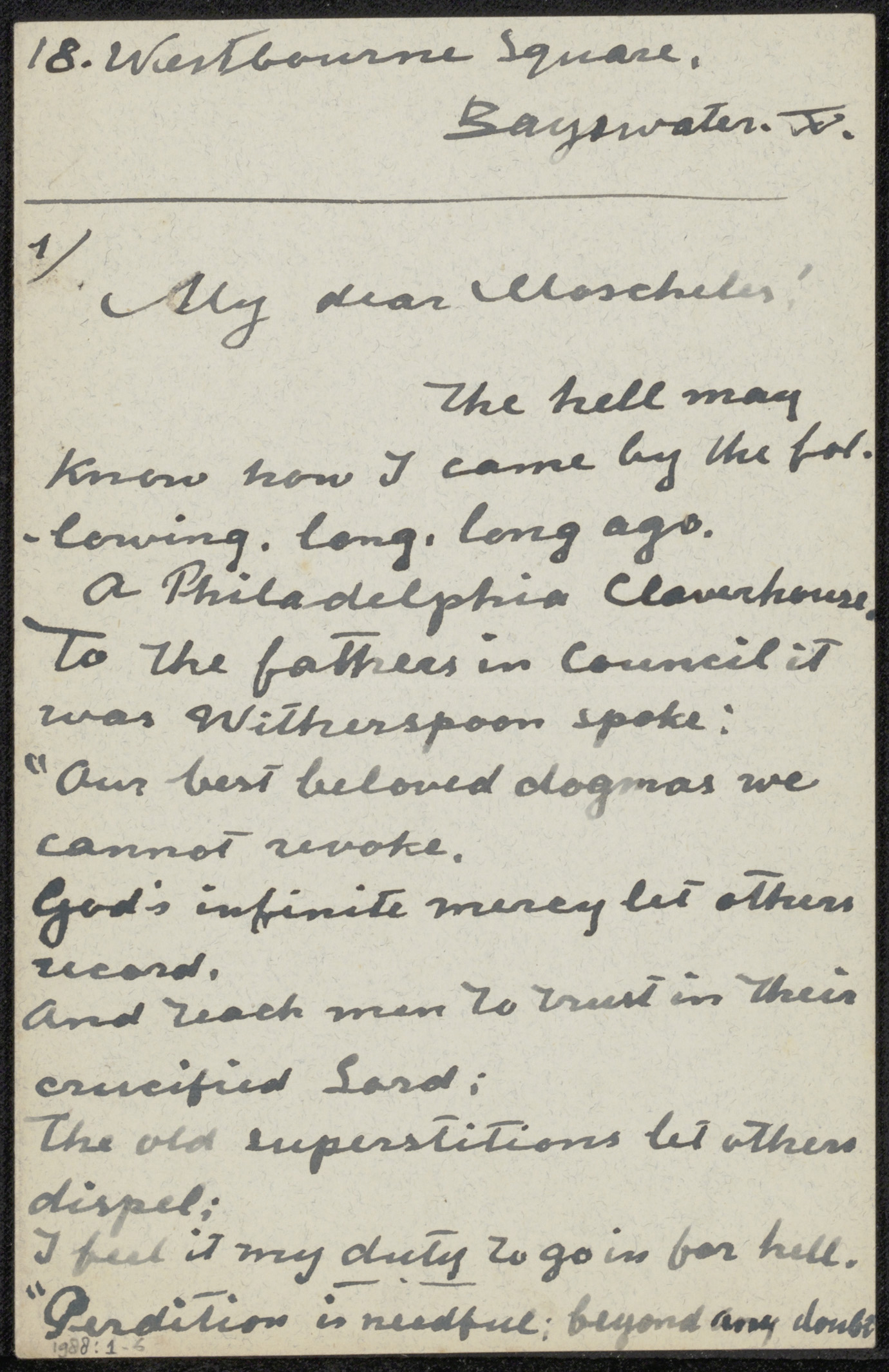 Brief aan Felix Stone Moscheles en mevrouw Moscheles