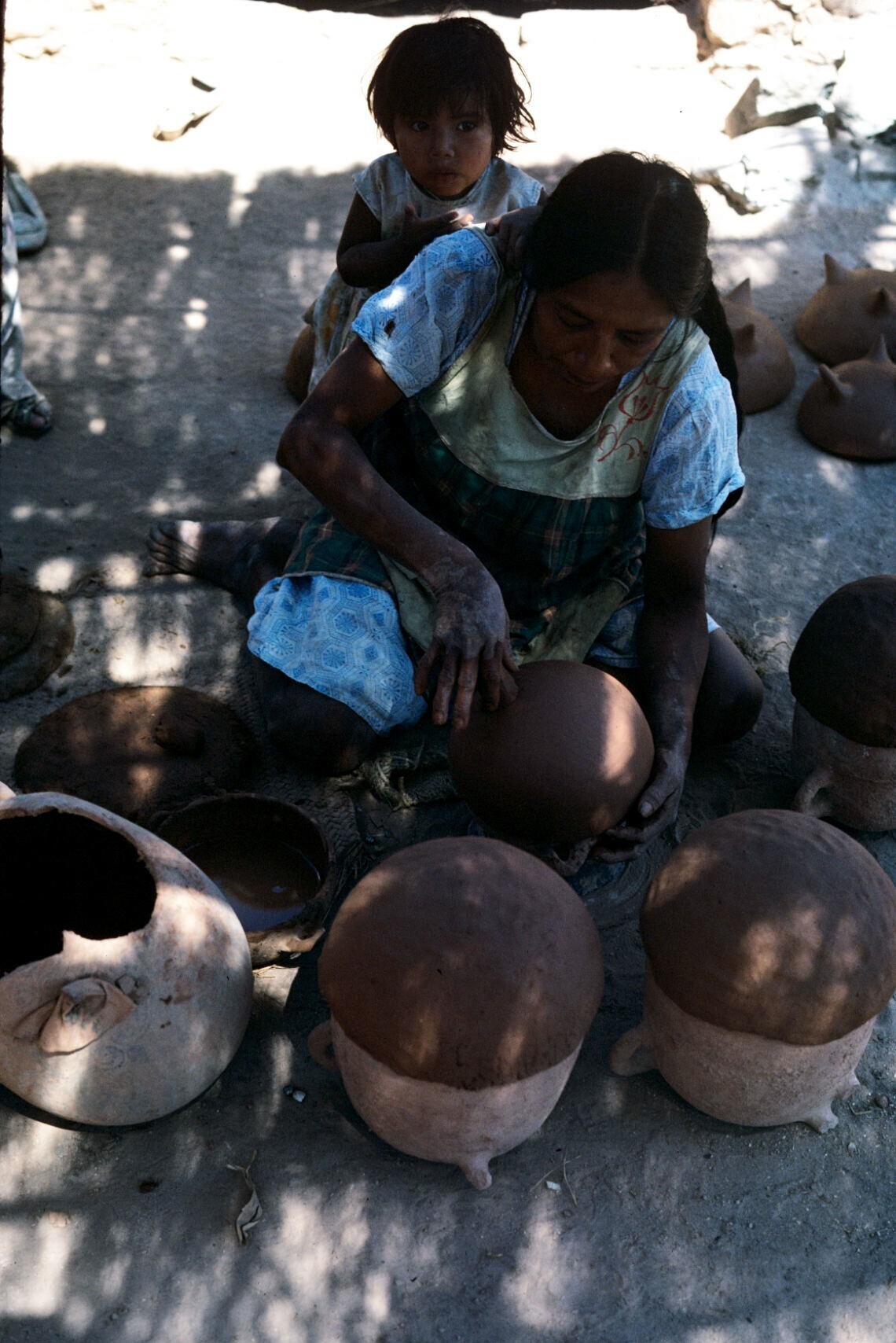 pottenbakster Margarita Gonzálezen familieleden op erf