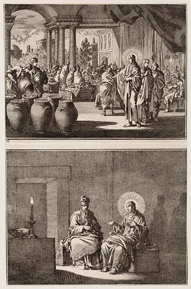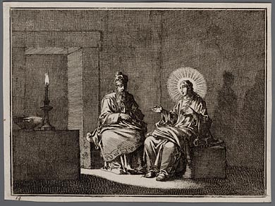 Nicodemus bij kaarslicht met Jezus sprekende