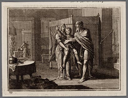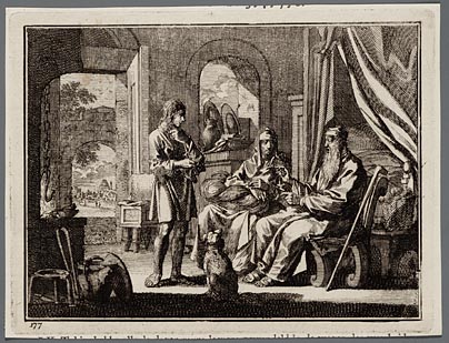 De oude Tobias met naast zich zijn vrouw, vermaant z...