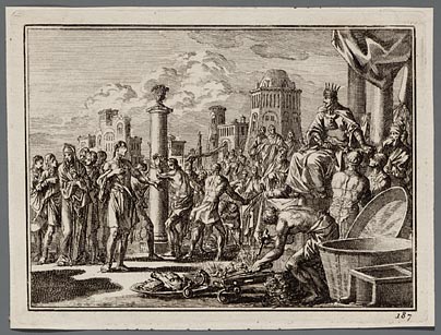 Nebukadnezar ziet vier personen wandelen in de vurig...