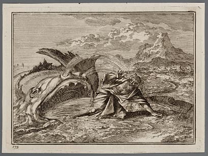 Jona door de walvis uitgespuwd