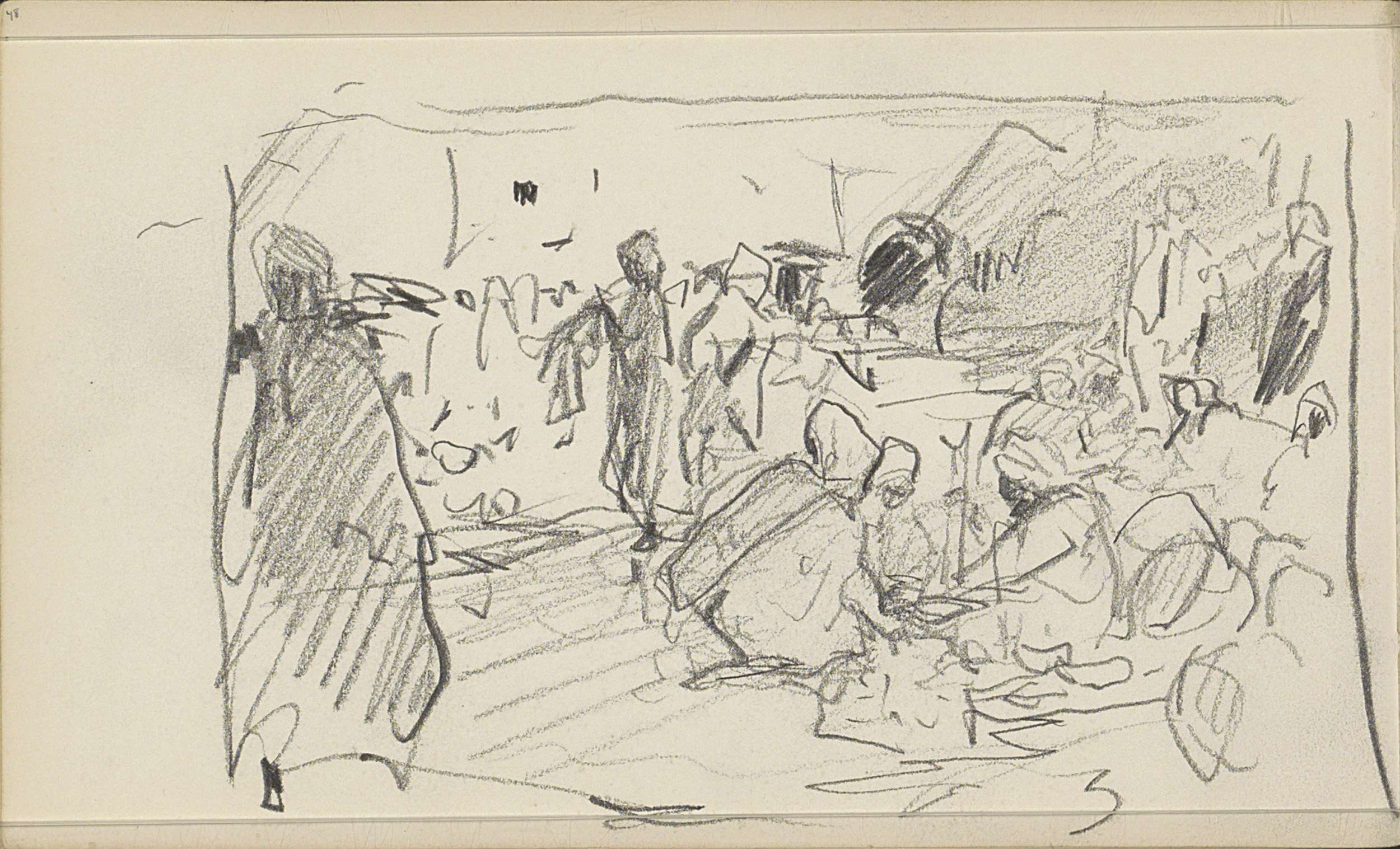 Straat in Biskra met Algerijnen voor een gebouw met ...