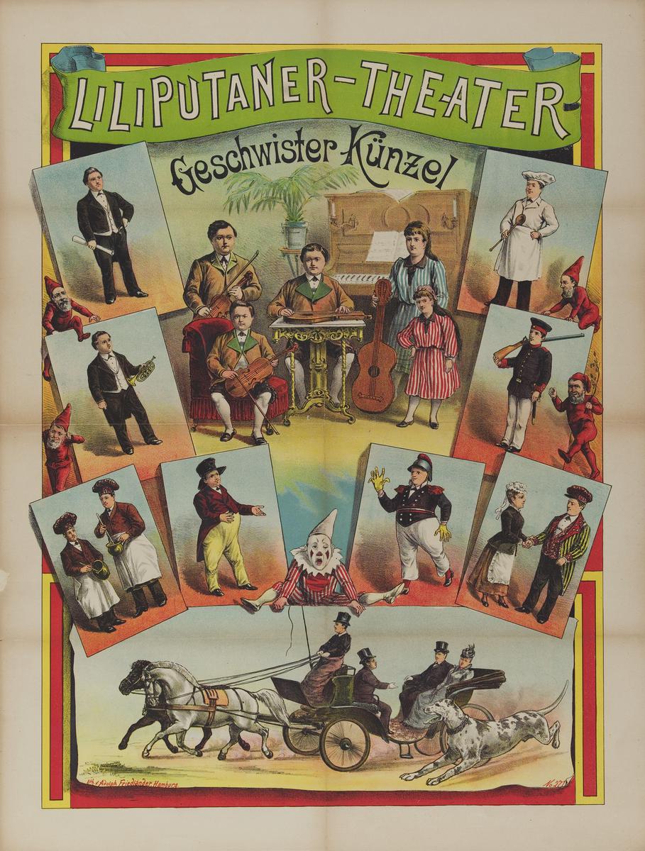 Tekst: "Liliputaner-Theater Geschwister Künzel"; met...
