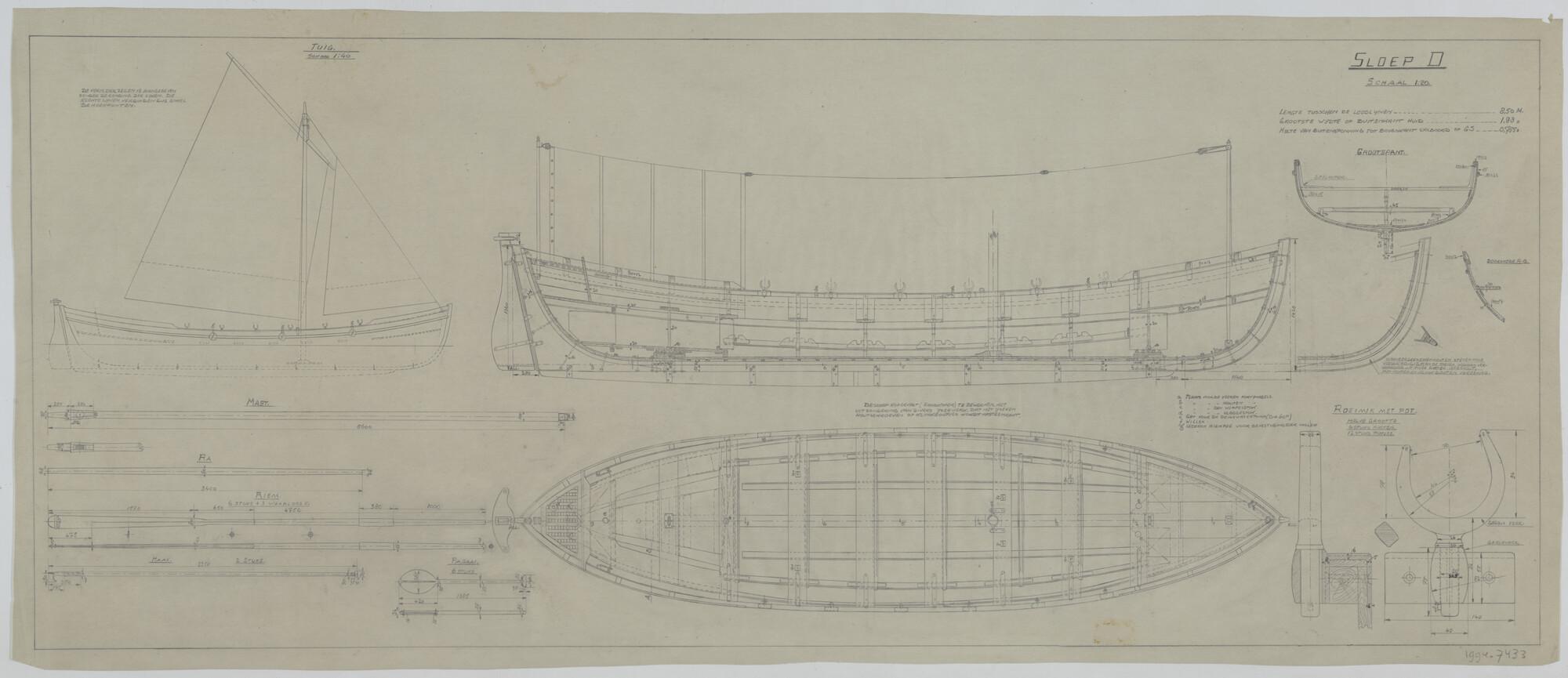 Constructietekening van een D sloep