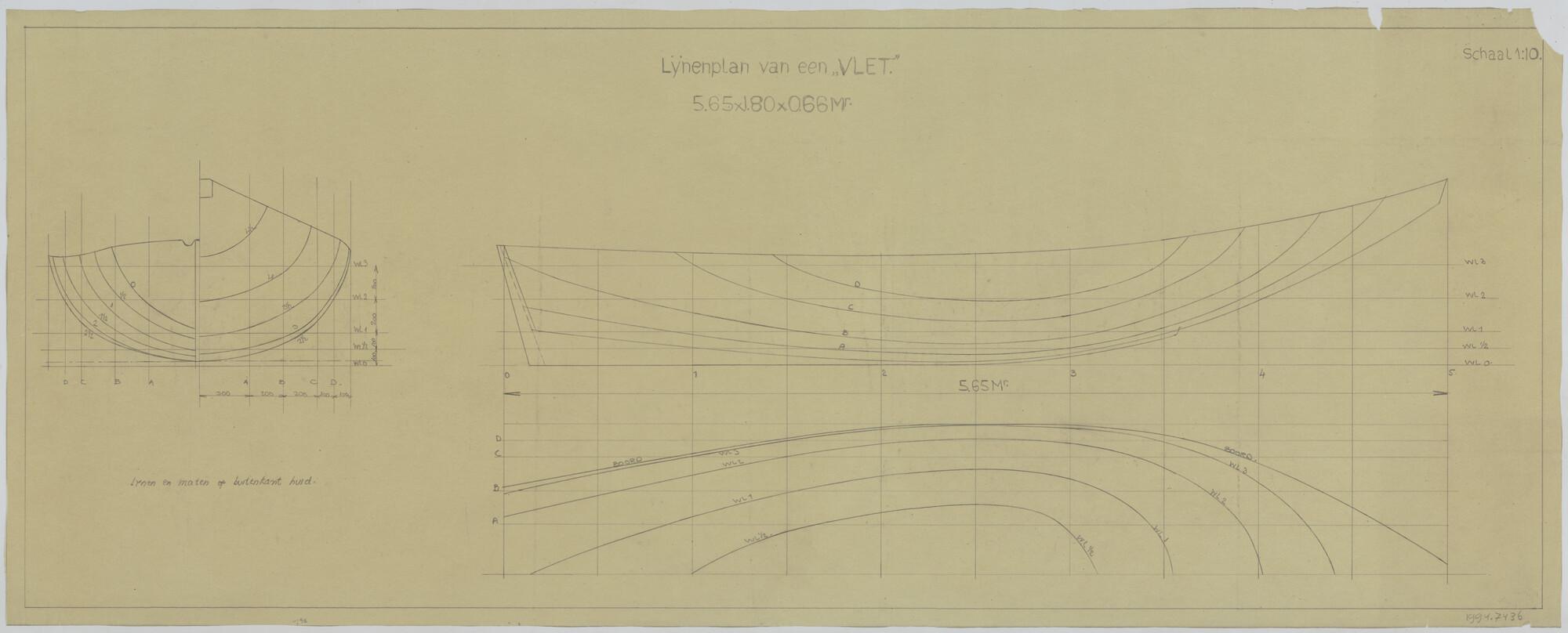 Lijnenplan van een spiegelvlet