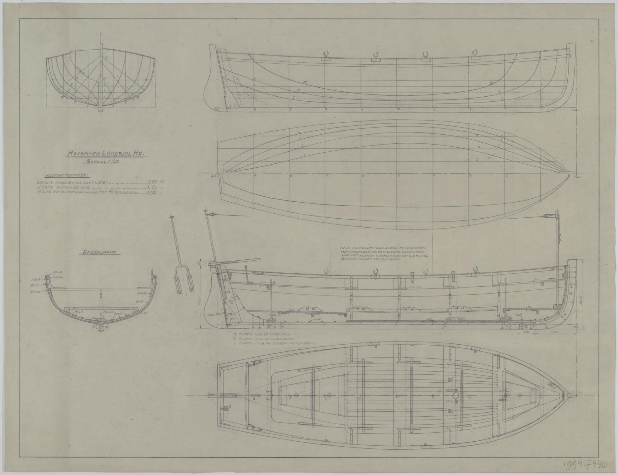 Algemeen plan van een kleine loodsjol G2