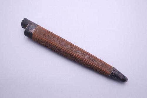 Palmhouten mes- en priemschede met spreuken en snijwerk