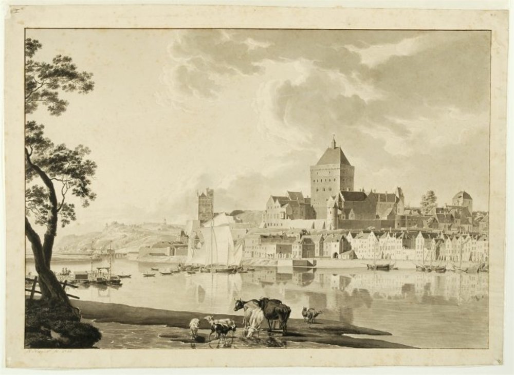 Gezicht oostwaarts vanaf Valkhof op de Waal met op v...