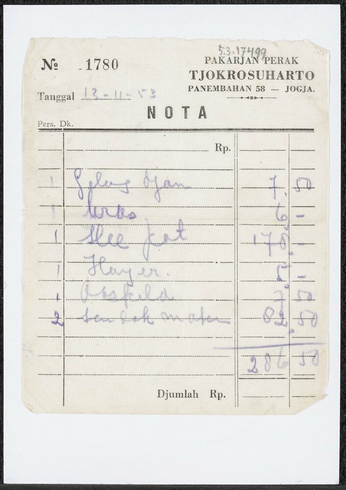 Rekening van 'Pakarjan Perak Tjokrosuharto, Panembah...