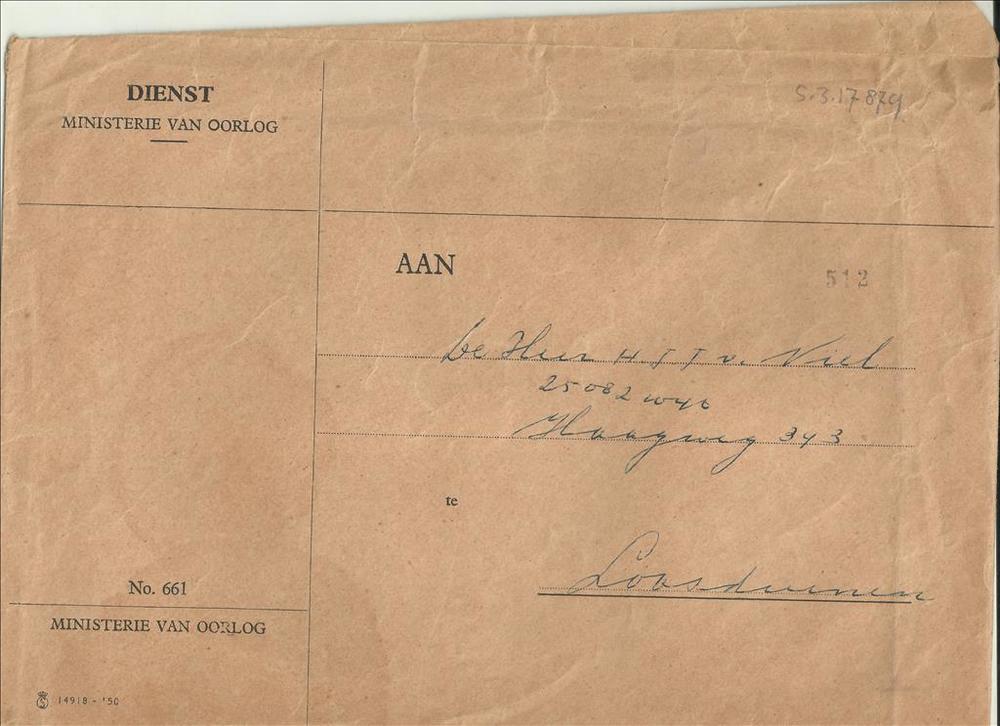 enveloppe behorende bij de oorkonde van toekenning E...