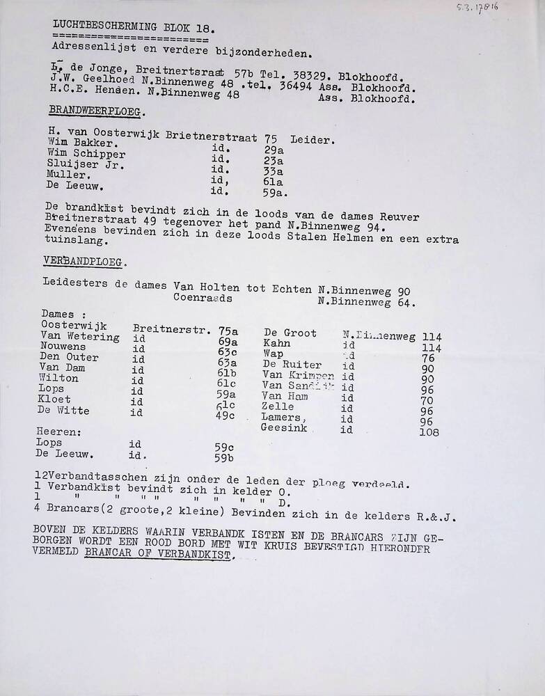 Adressenlijst en verdere bijzonderheden van Luchtbes...