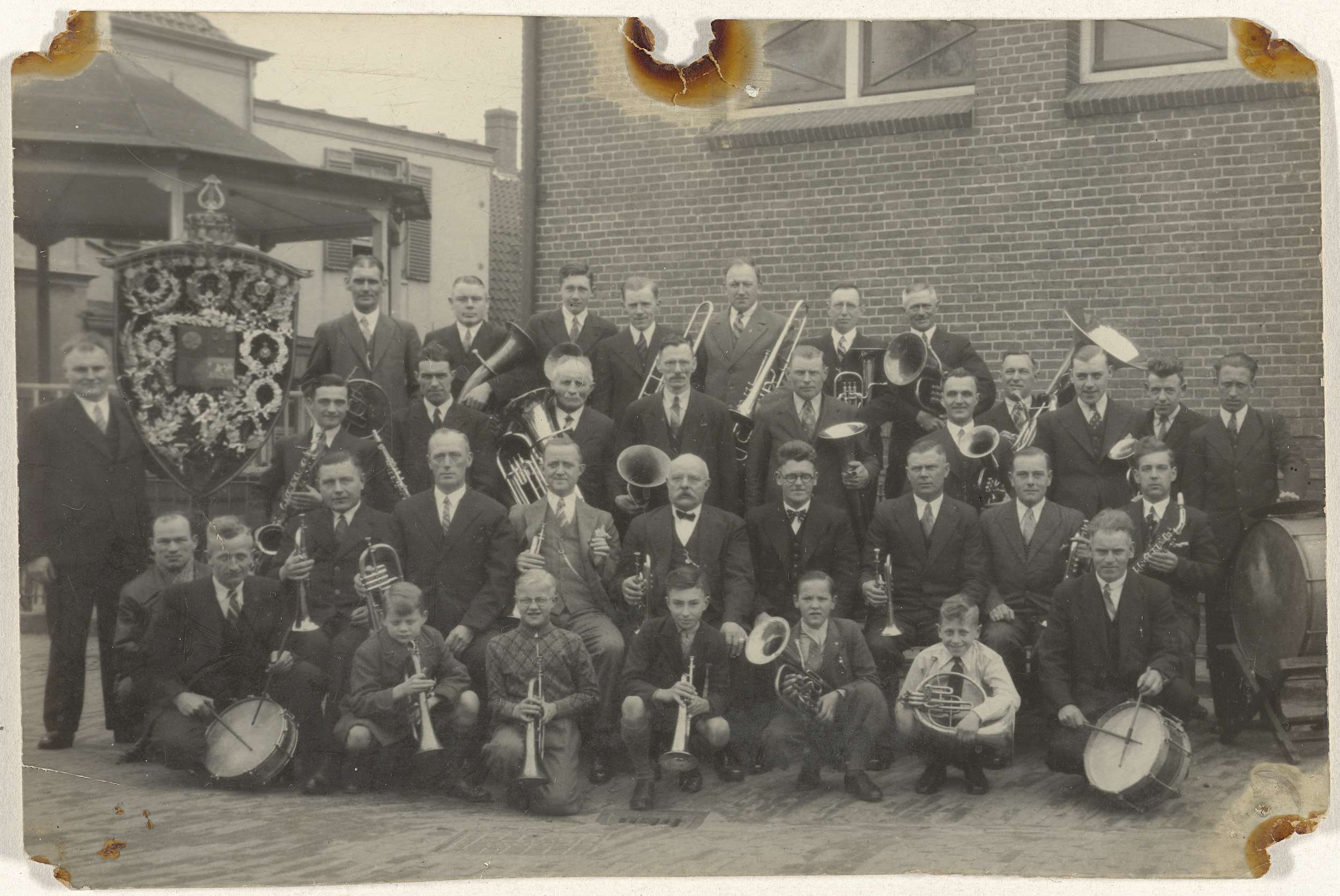 Groepsportret van muziekgezelschap 'Crescendo' in Doorn