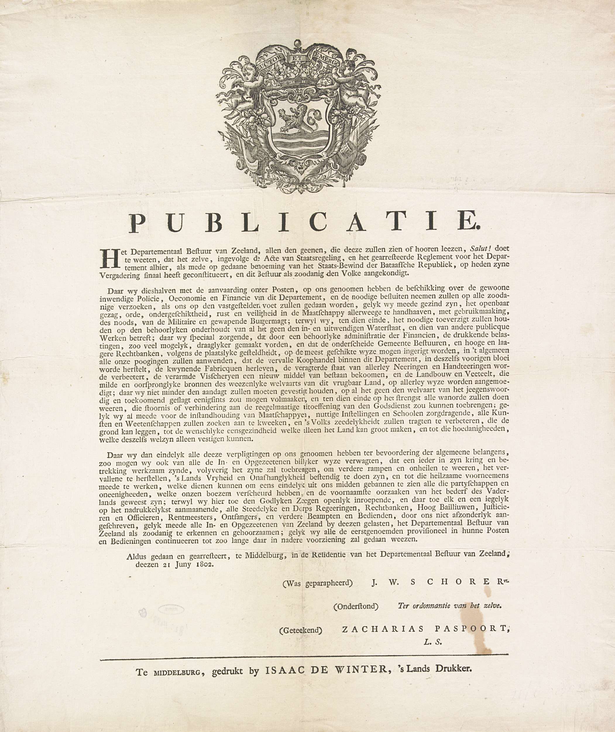 Publicatie van het Departementaal Bestuur van Zeelan...