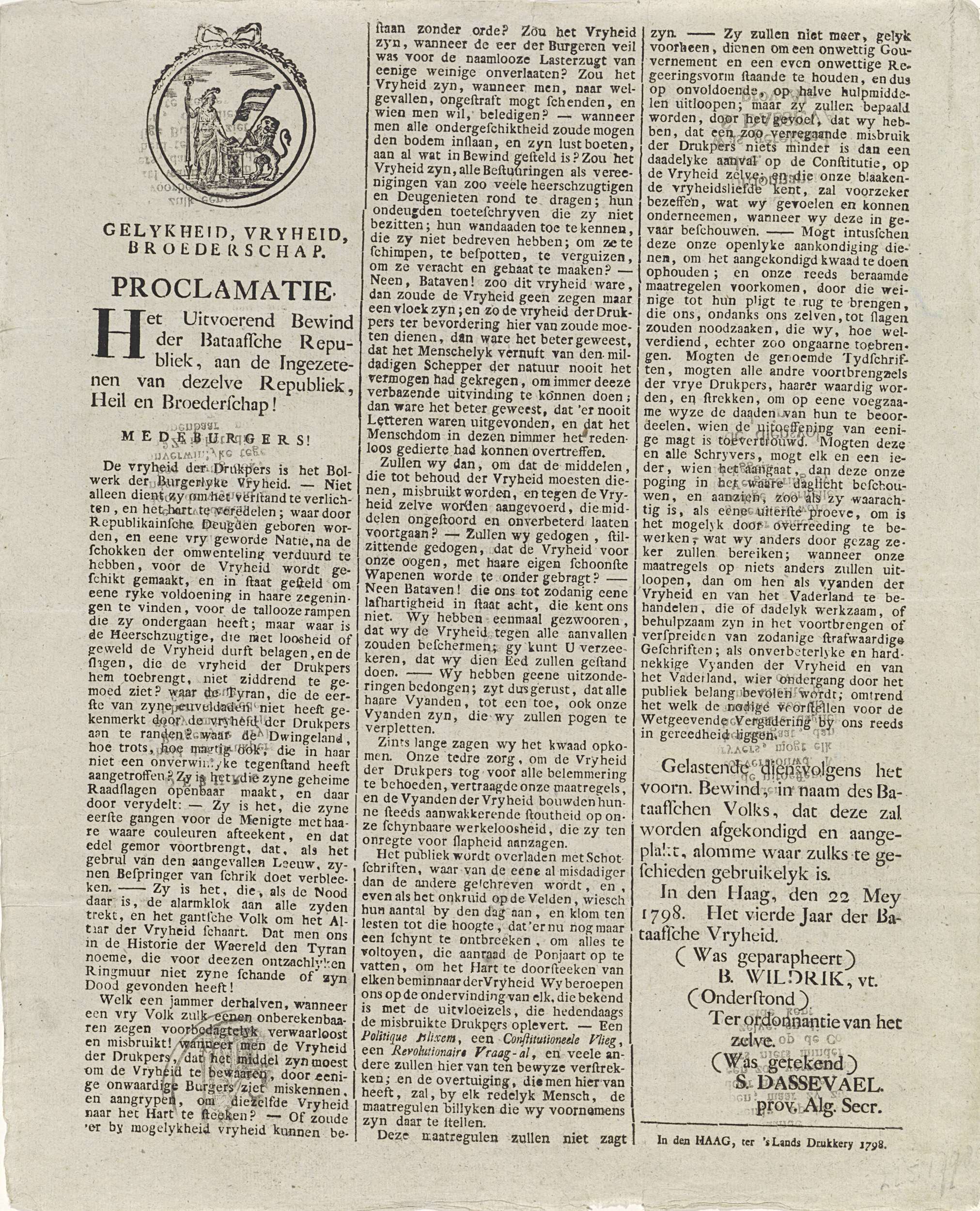 Proclamatie van het Uitvoerend Bewind van de Bataafs...