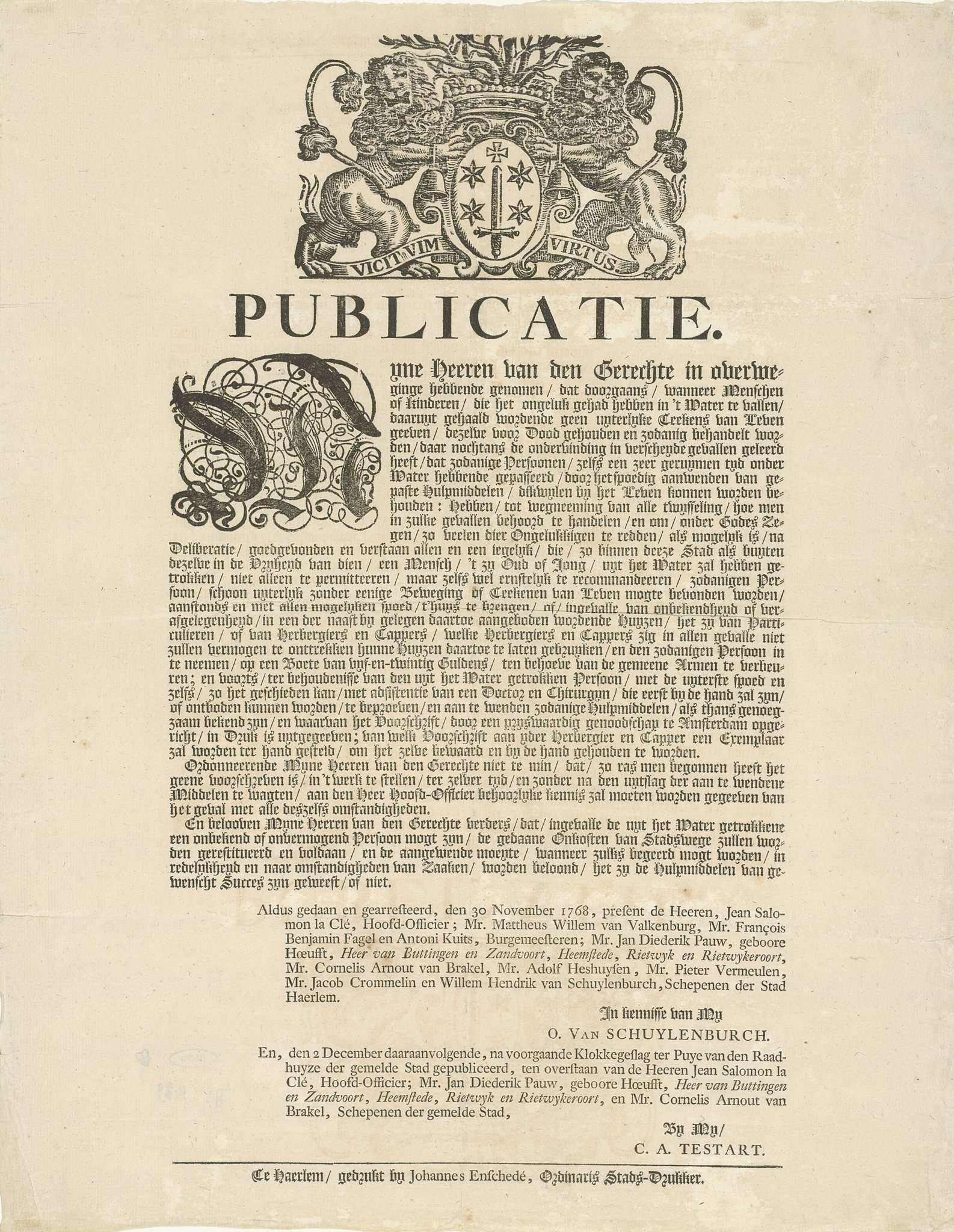 Publicatie over het redden van te water geraakten, 1768