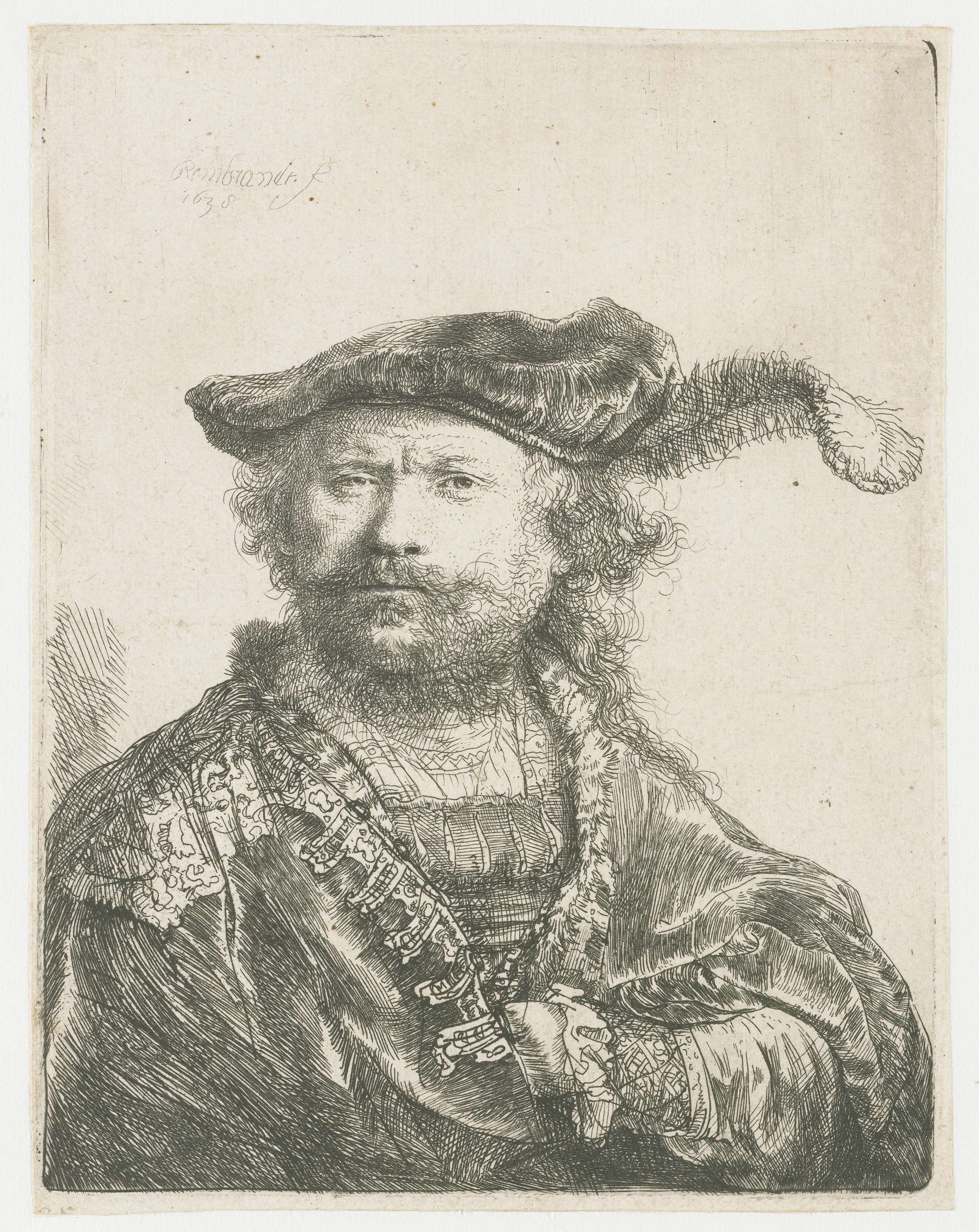 Zelfportret met gepluimde fluwelen baret